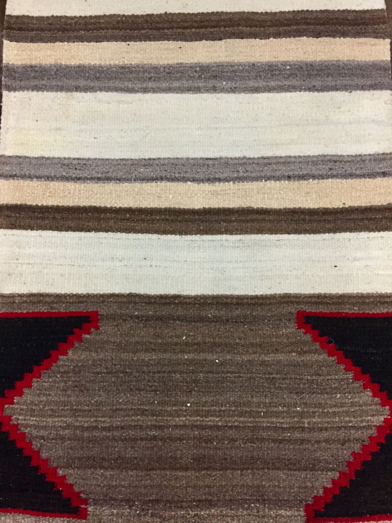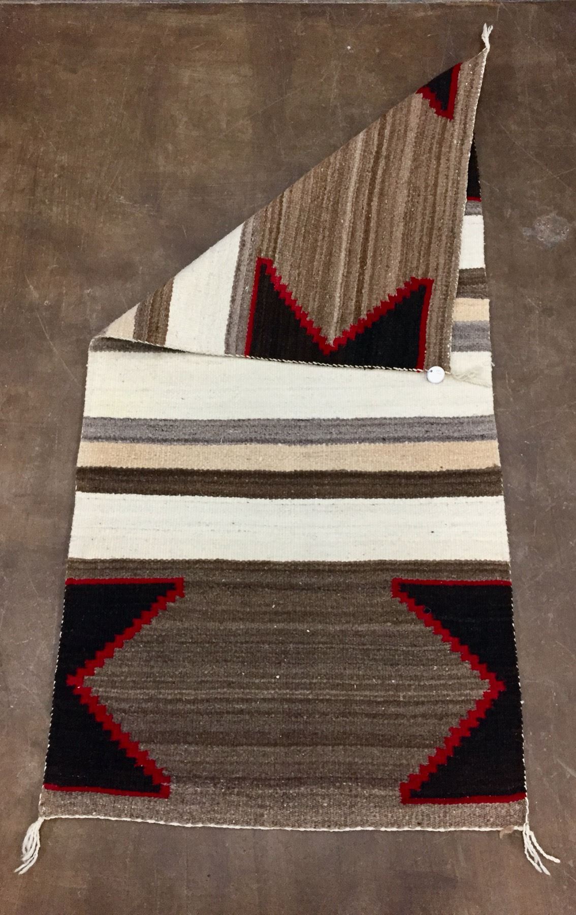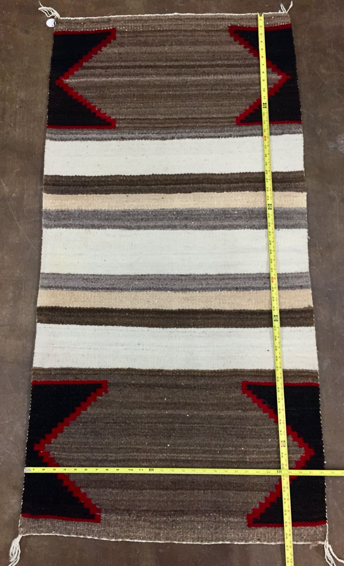 Description: Presented for sale in this lot is a vintage Navajo Textile featuring nice designs in reds, browns and whites made from hand spun and hand dyed wool. Maker: Unknown Navajo Weaver. Approx. Age: Circa 1940s - 50s. Size: 28-1/2”w x 57” long. Condition: Pretty good for its age, normal wear and aging expected. Please look closely at the pictures - they are an important part of our description. Shipping: There will be a $5 handling / packaging fee for shipping this lot. The actual cost of postage will be added on top of that.