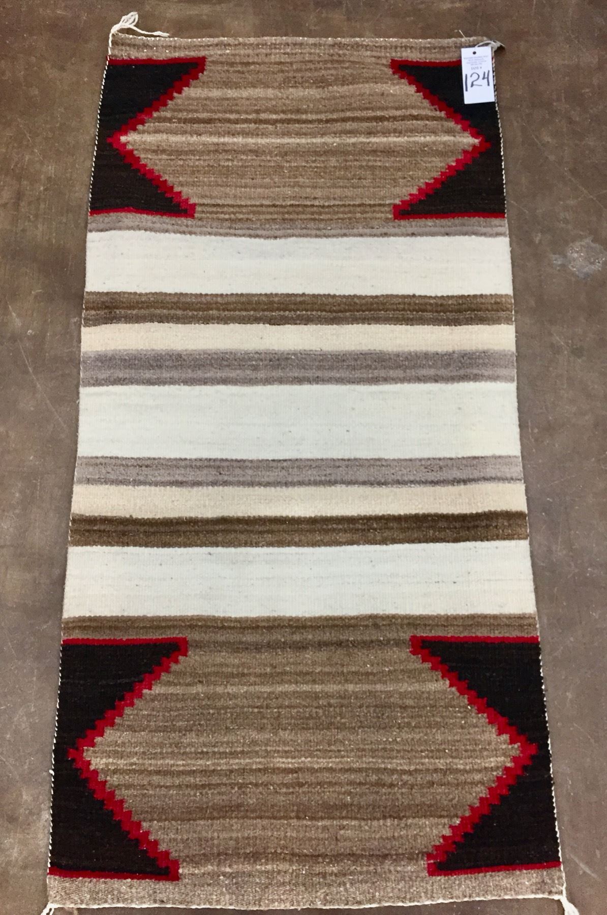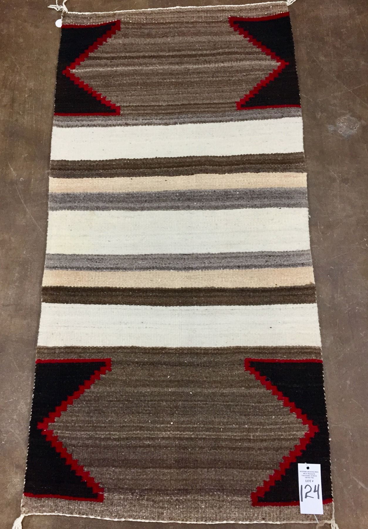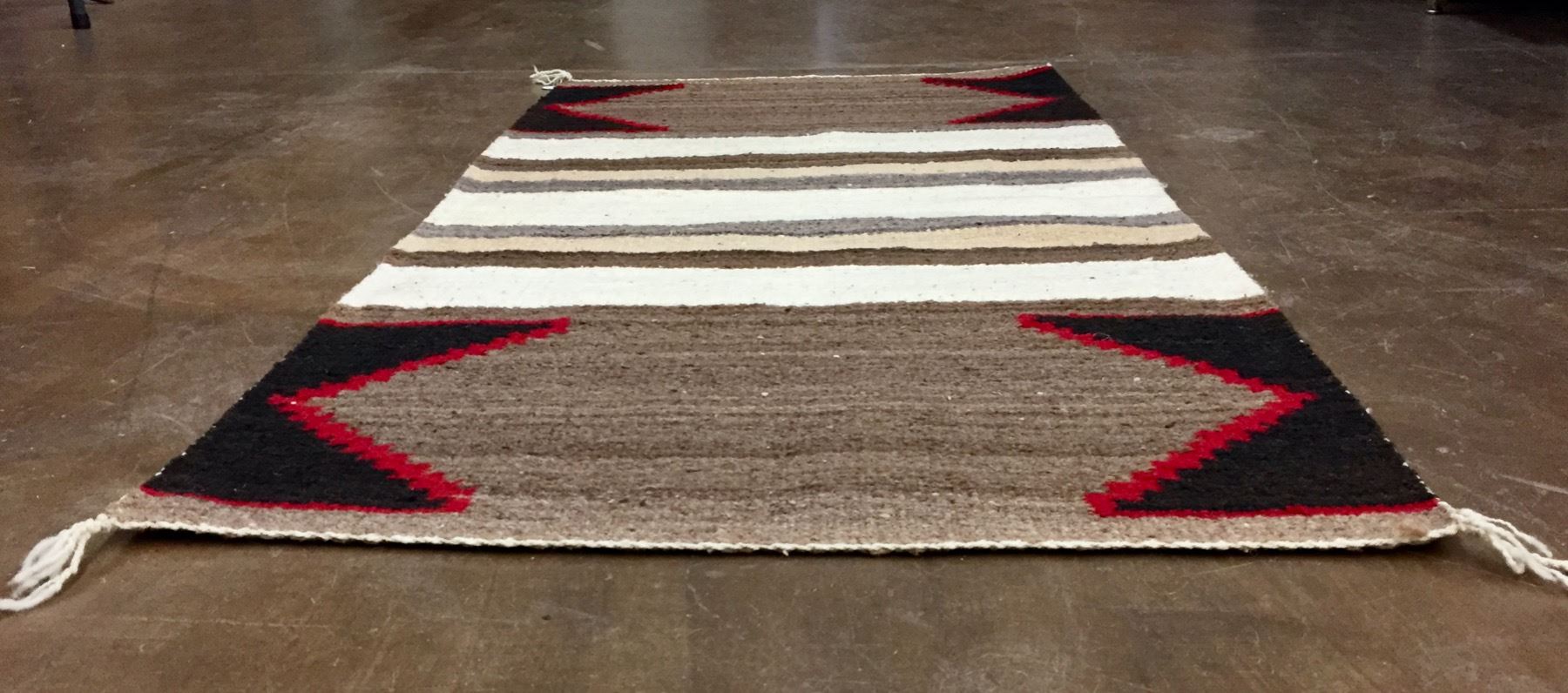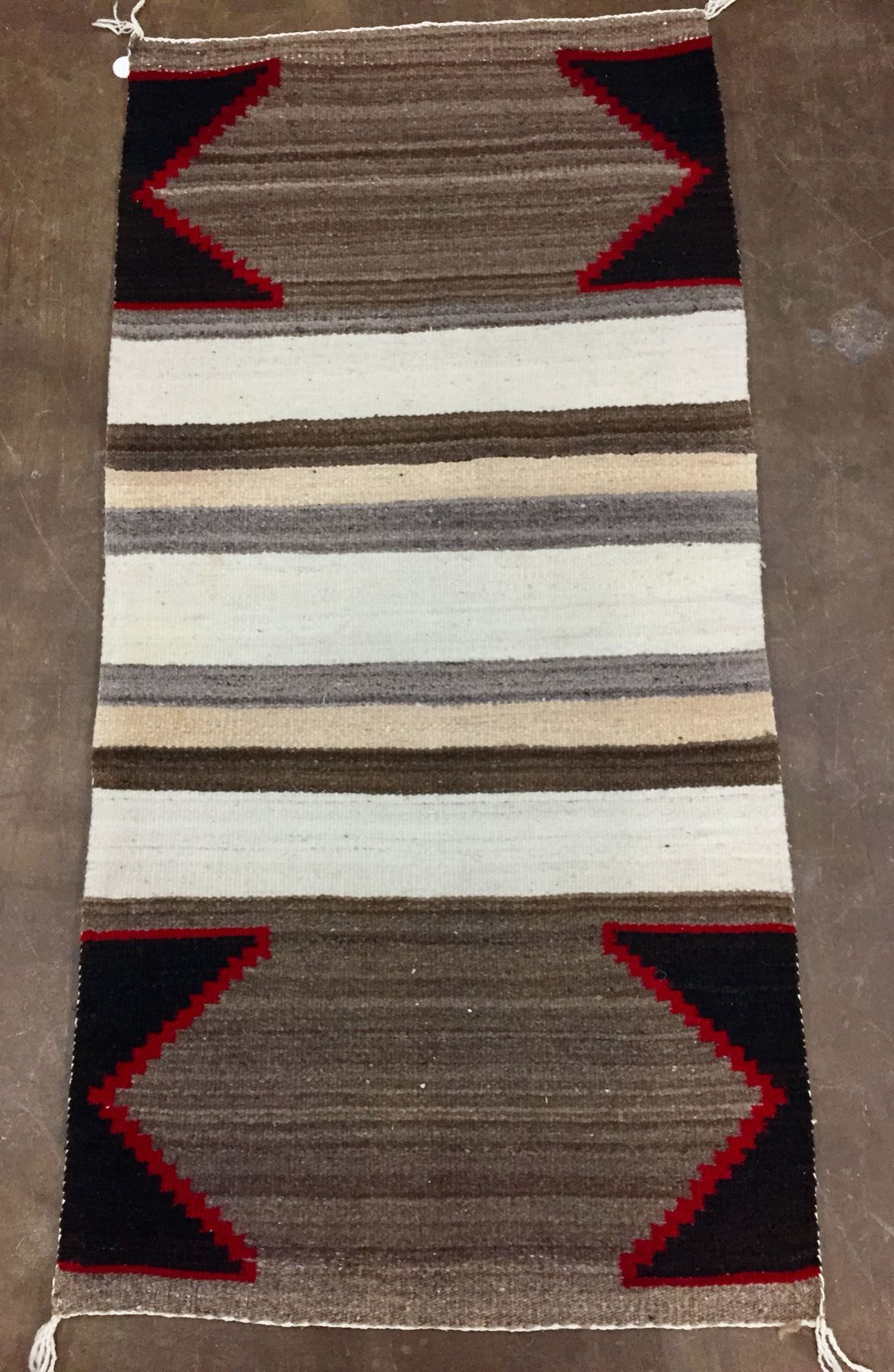 Description: Presented for sale in this lot is a vintage Navajo Textile featuring nice designs in reds, browns and whites made from hand spun and hand dyed wool. Maker: Unknown Navajo Weaver. Approx. Age: Circa 1940s - 50s. Size: 28-1/2”w x 57” long. Condition: Pretty good for its age, normal wear and aging expected. Please look closely at the pictures - they are an important part of our description. Shipping: There will be a $5 handling / packaging fee for shipping this lot. The actual cost of postage will be added on top of that.