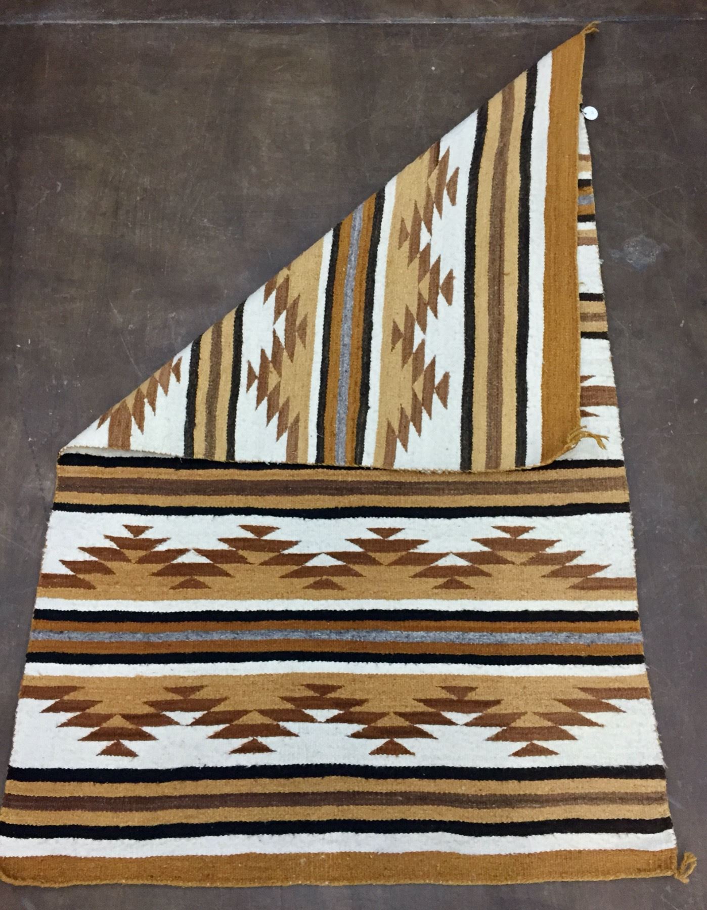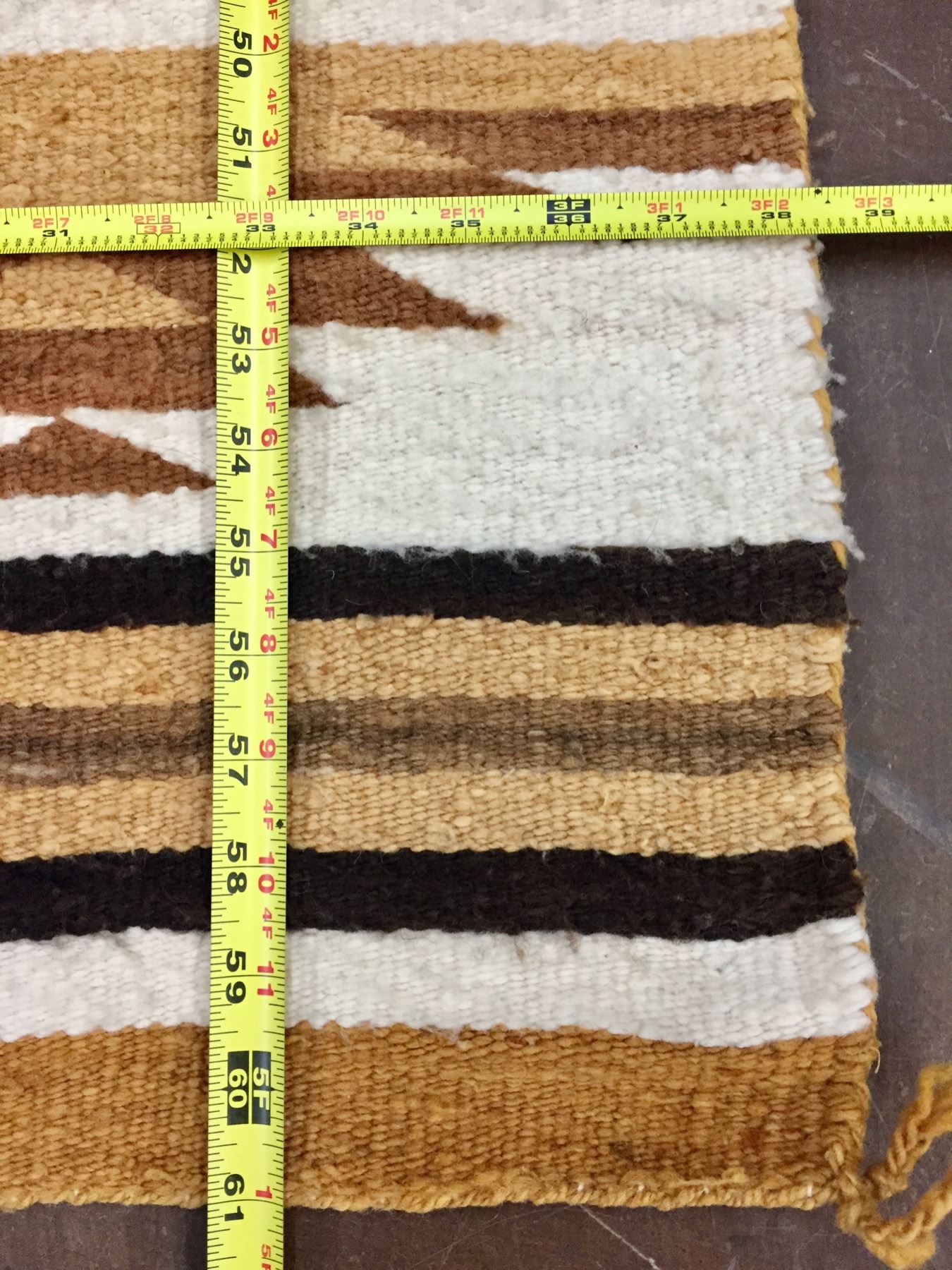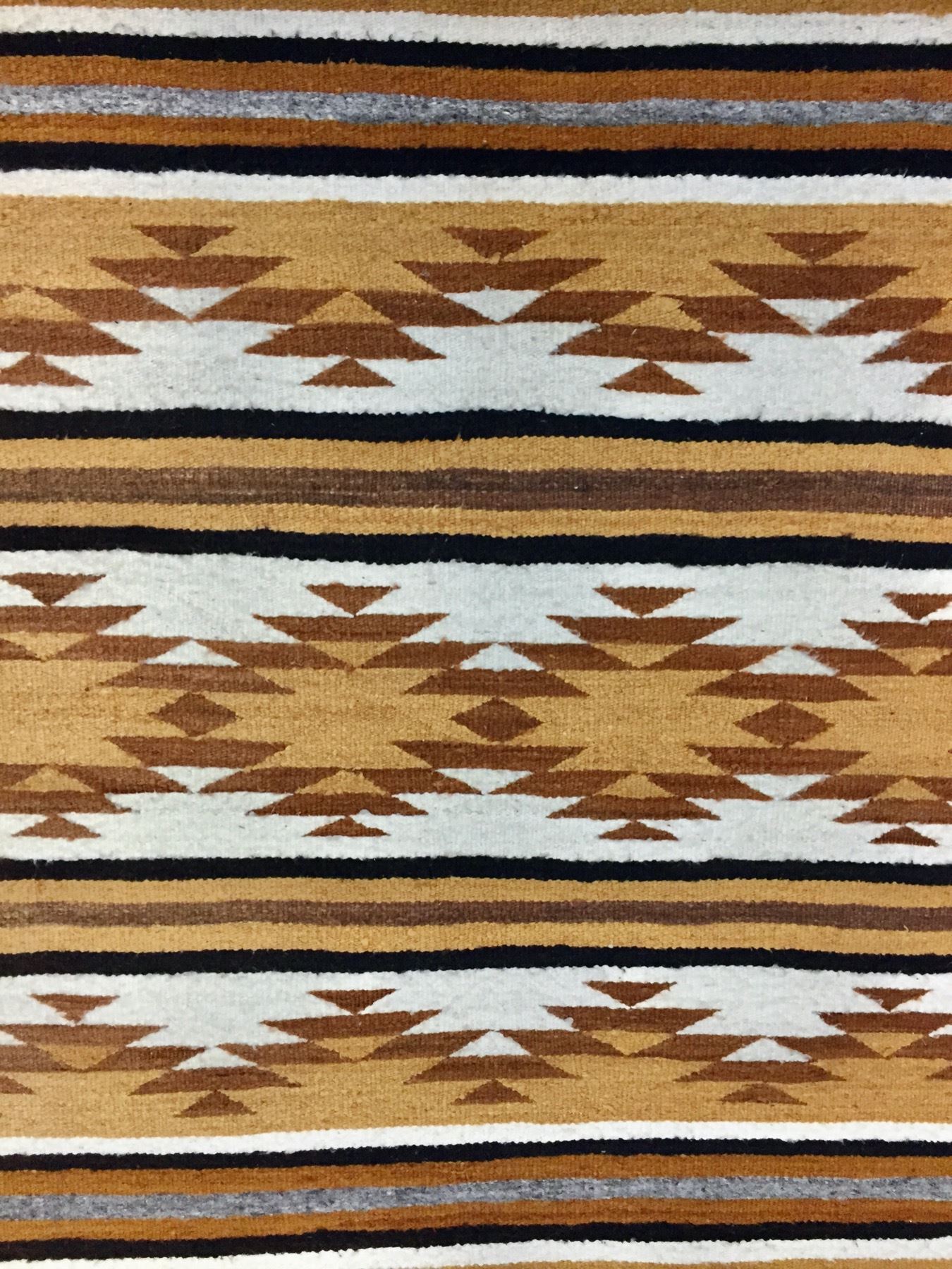 Description: For sale in this lot is a vintage Navajo Textile featuring yellows, browns and whites made from hand spun and hand dyed wool. Maker: Unknown Navajo Weaver. Approx. Age: Circa mid-century. Size: 38-1/2” x 61”. Condition: Good for its age, normal wear and aging expected. Please look closely at the pictures - they are an important part of our description. Shipping: There will be a $5 handling / packaging fee for shipping this lot. The actual cost of postage will be added on top of that.