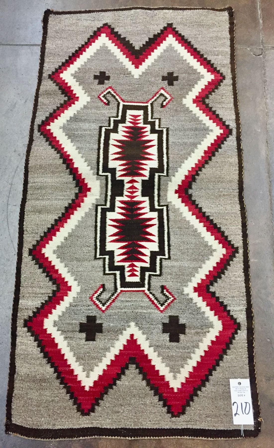 Description: Presented for sale in this lot is a vintage Navajo textile. This is a good looking vintage rug with hand spun wool in brown, cream, red and tan colors. Maker: Unknown Navajo weaver. Approx. Age: Vintage. Size: Measures 26 inches wide x 54 inches long. Condition: Good for its age, normal wear expected. Please look closely at the pictures - they are an important part of our description. Shipping: There will be a $10 handling, packaging fee for shipping this lot. The actual cost of postage will be added on top of that.