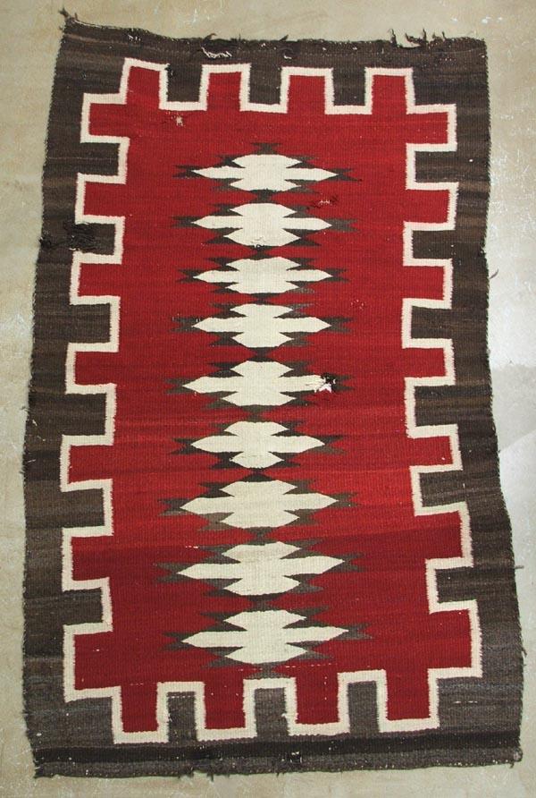 Vintage Navajo Textile. Some interior and selvage damage. Measures approx. 40'' x 33''. SHI $35.