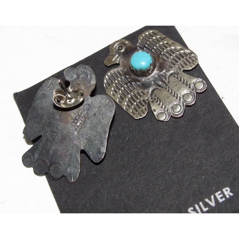 Vintage Navajo Thunderbird Post Earrings Sterling Silver Turquoise