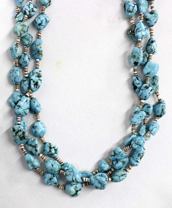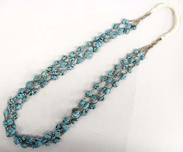 Vintage Native American Navajo Turquoise Nugget Necklace, ca. 1960s, measures 33''L end to end, shell heishi spacer beads