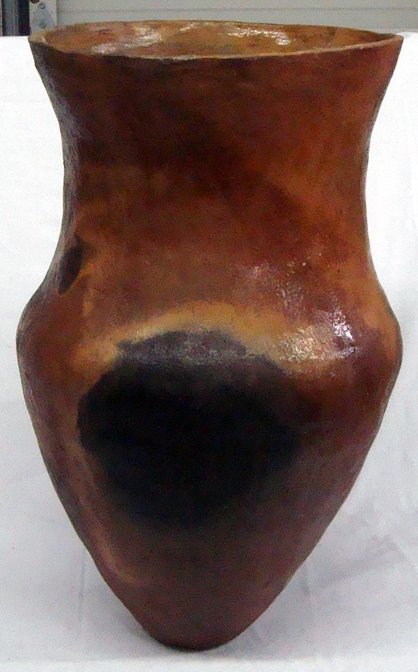 Vintage Native American Navajo Very Large Pottery Jar. Really nice large jar with lots of fire clouds and varigation in base reddish brown color. Measures 19''Hx11.5''W. MUST BE PICKED UP