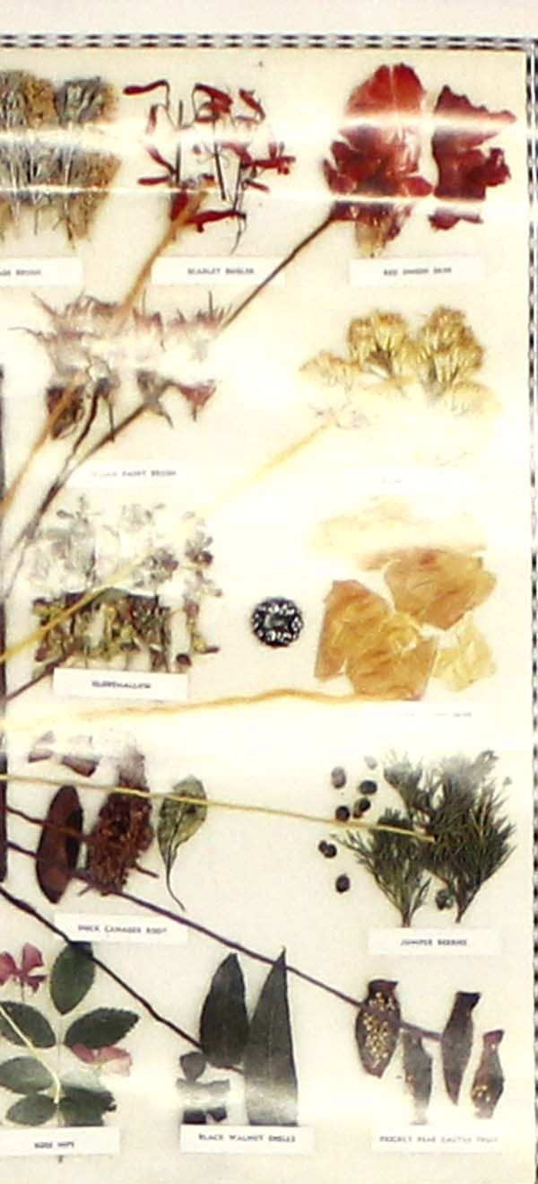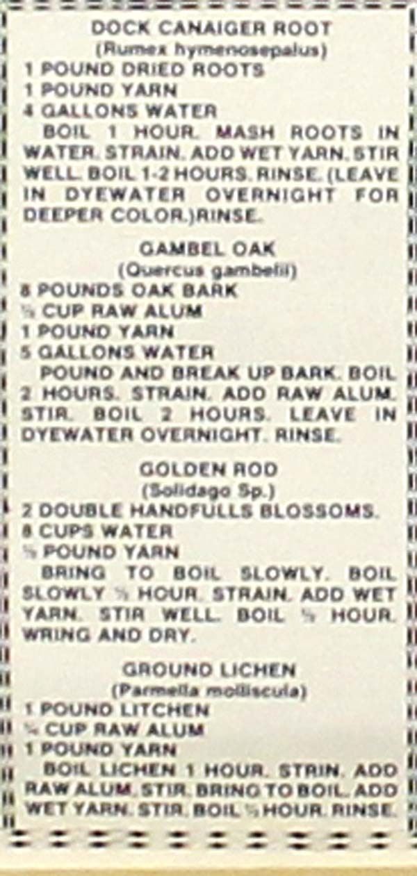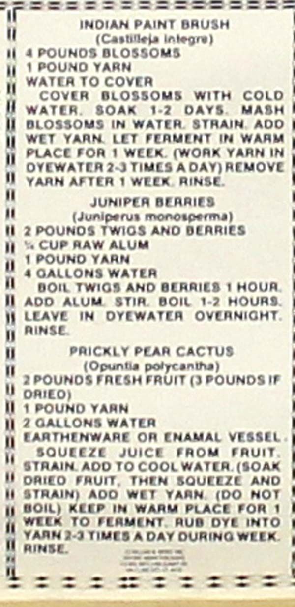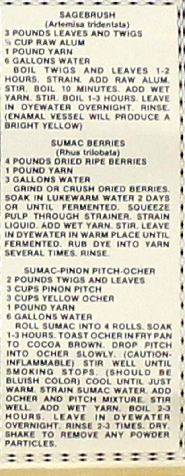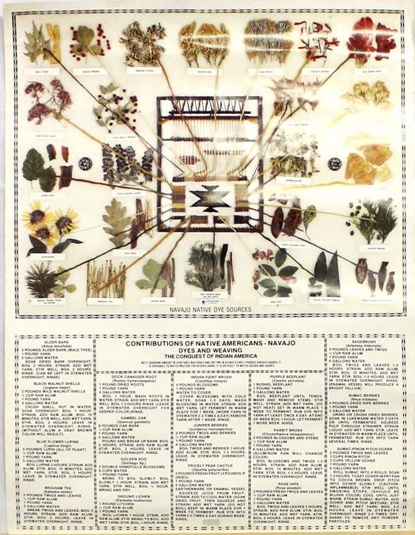 Vintage Navajo Weaver Materials & Dye Chart Poster, measures 22'' x 29'', can be rolled to ship, some crinkled edges along border and is a tear near the top edge which has been taped