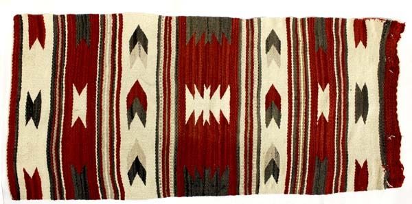 Vintage Native American Navajo Wool Textile Rug, measures 18'' x 39'', no tassels, does have selvage damage on one end