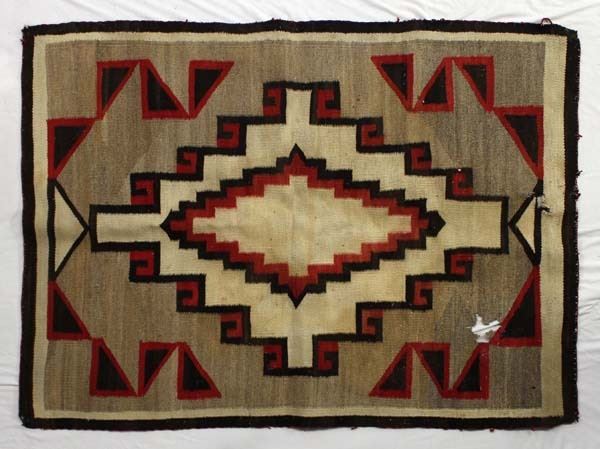 Vintage Native American Navajo Klagetoh Wool Textile Rug, measures 39'' x 55'', selvage damage, some holes, some lazy stitches, crisp color