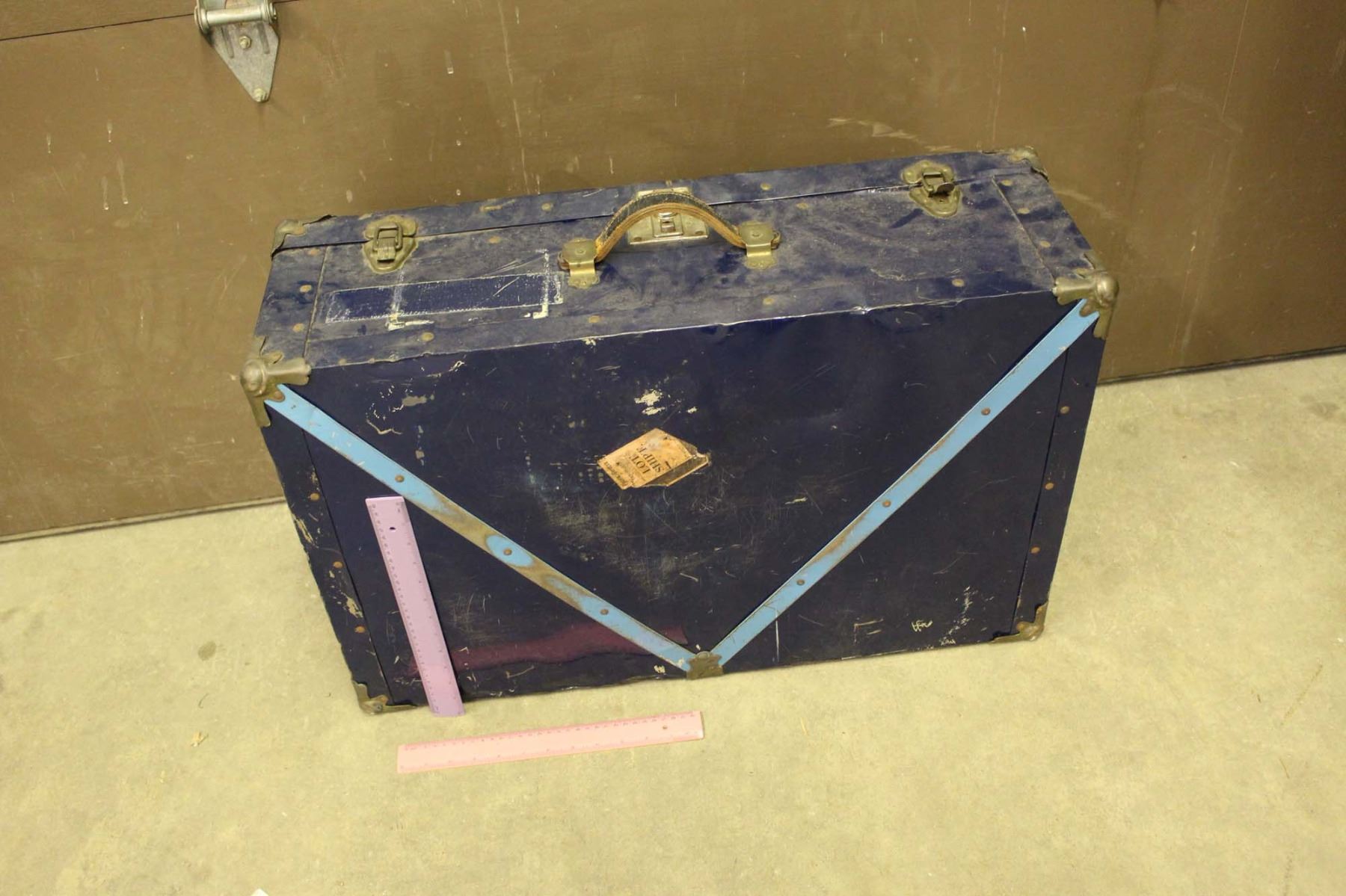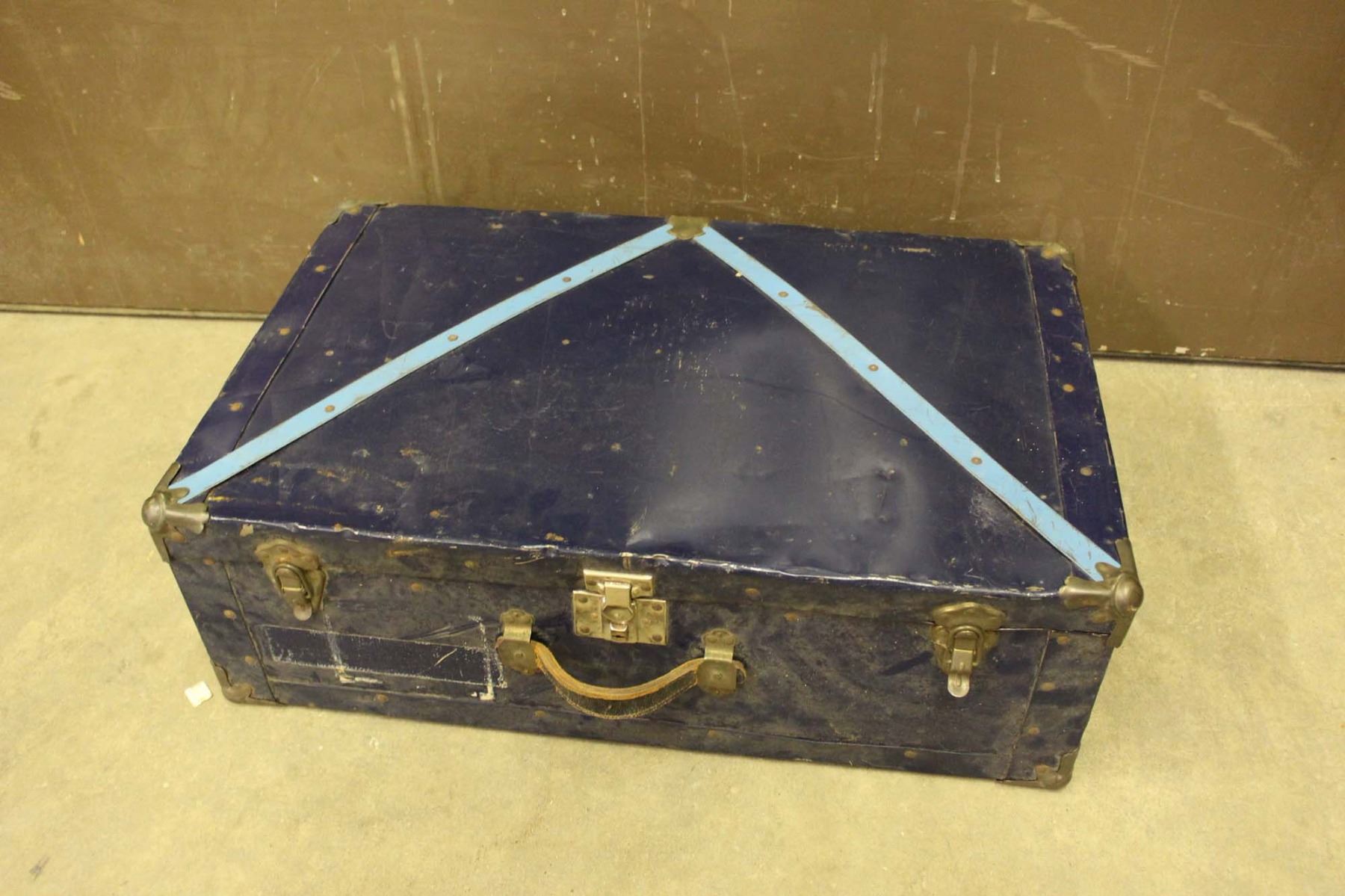 Vintage Navy Blue Metal Suitcase (28"x10"x18")