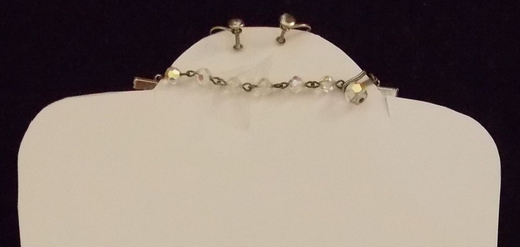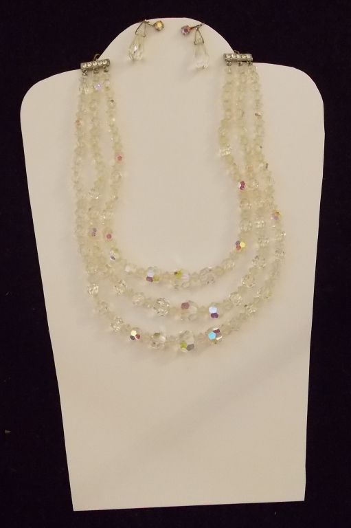 Costume Jewelry Necklace and Ear Ring set with Clear Aurora Borealis Crystals from the '60s. Comes as shown in Photos. Case for display only and is not included.