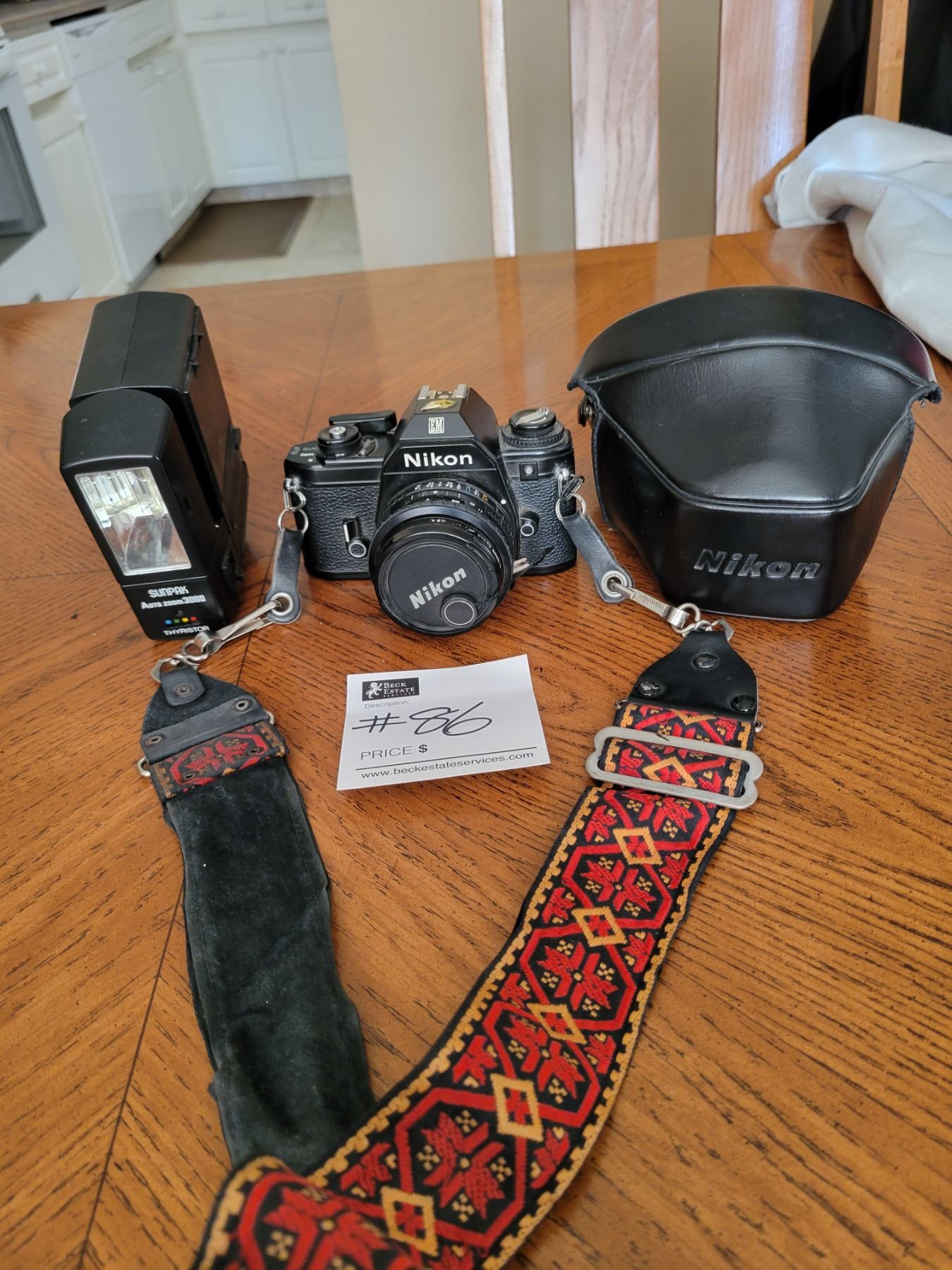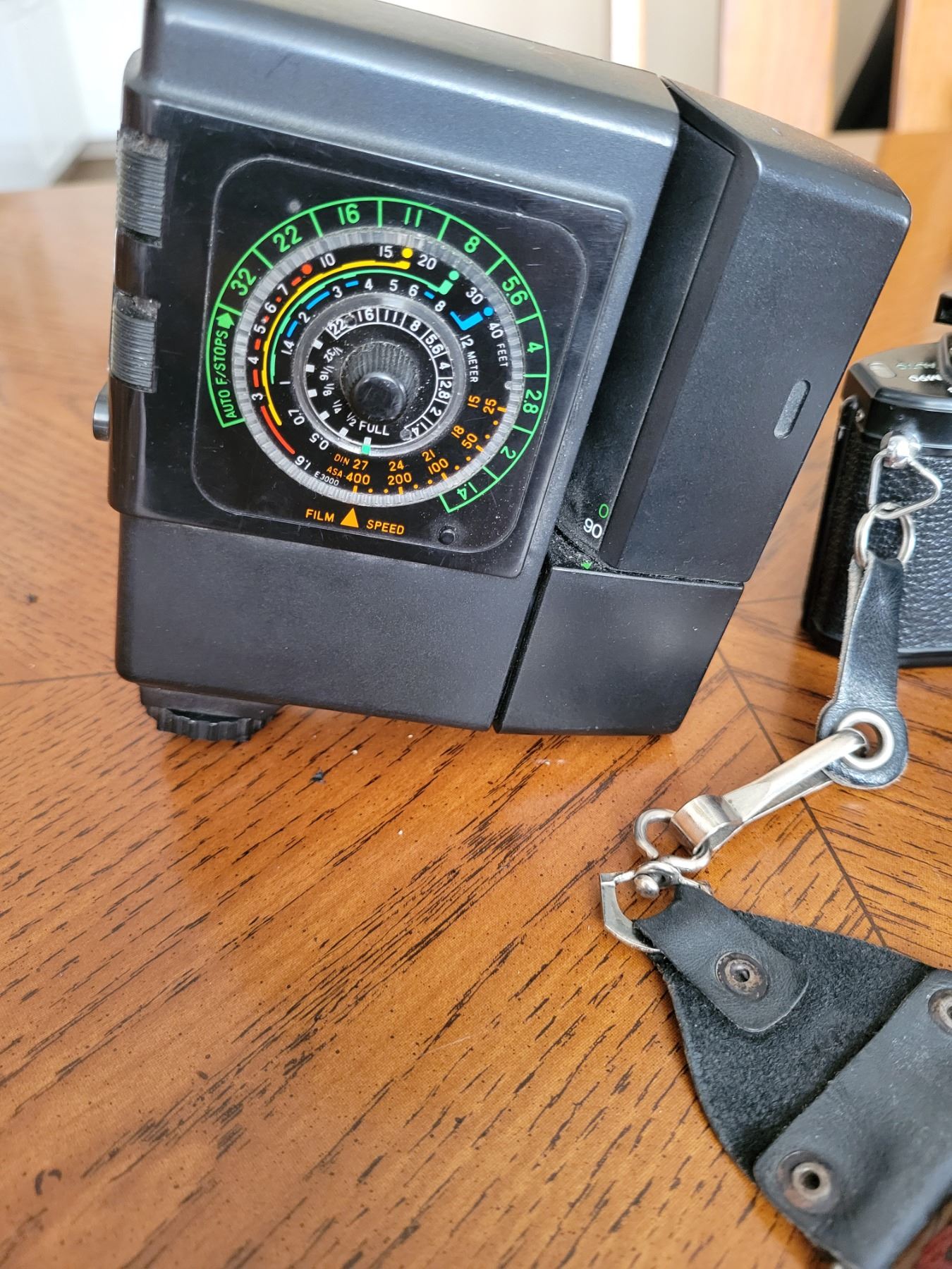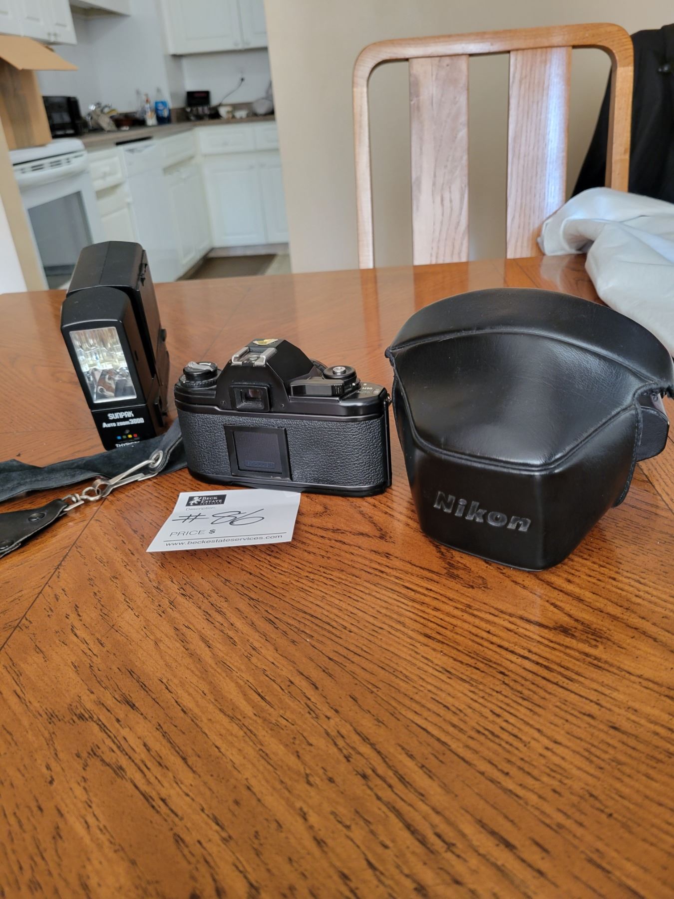 Vintage Nikon 35mm Camera with Case & Sunpak Auto Zoom 3000 Flash Gun