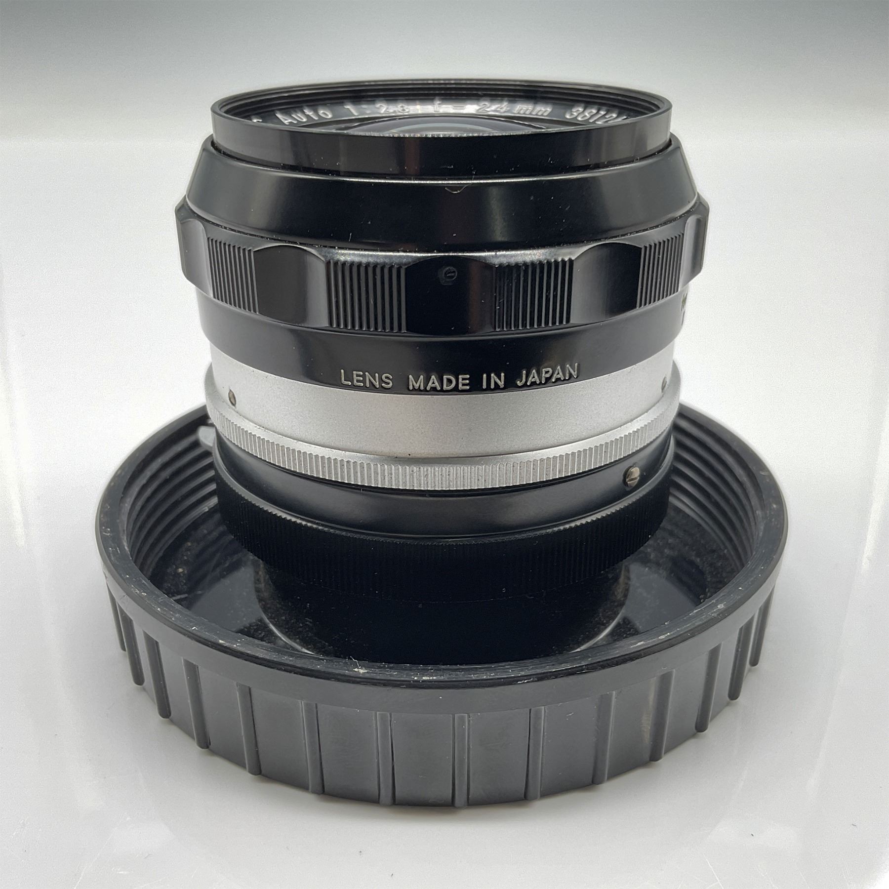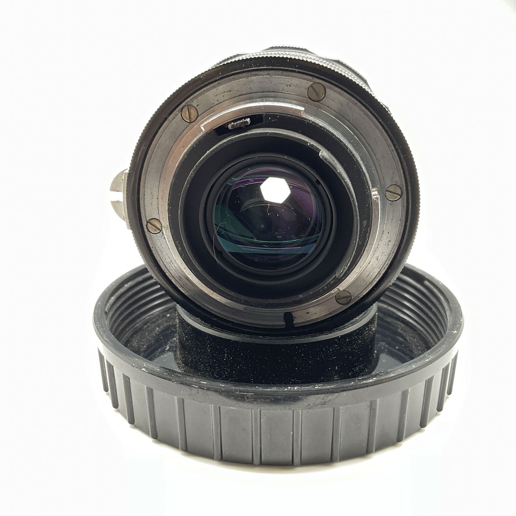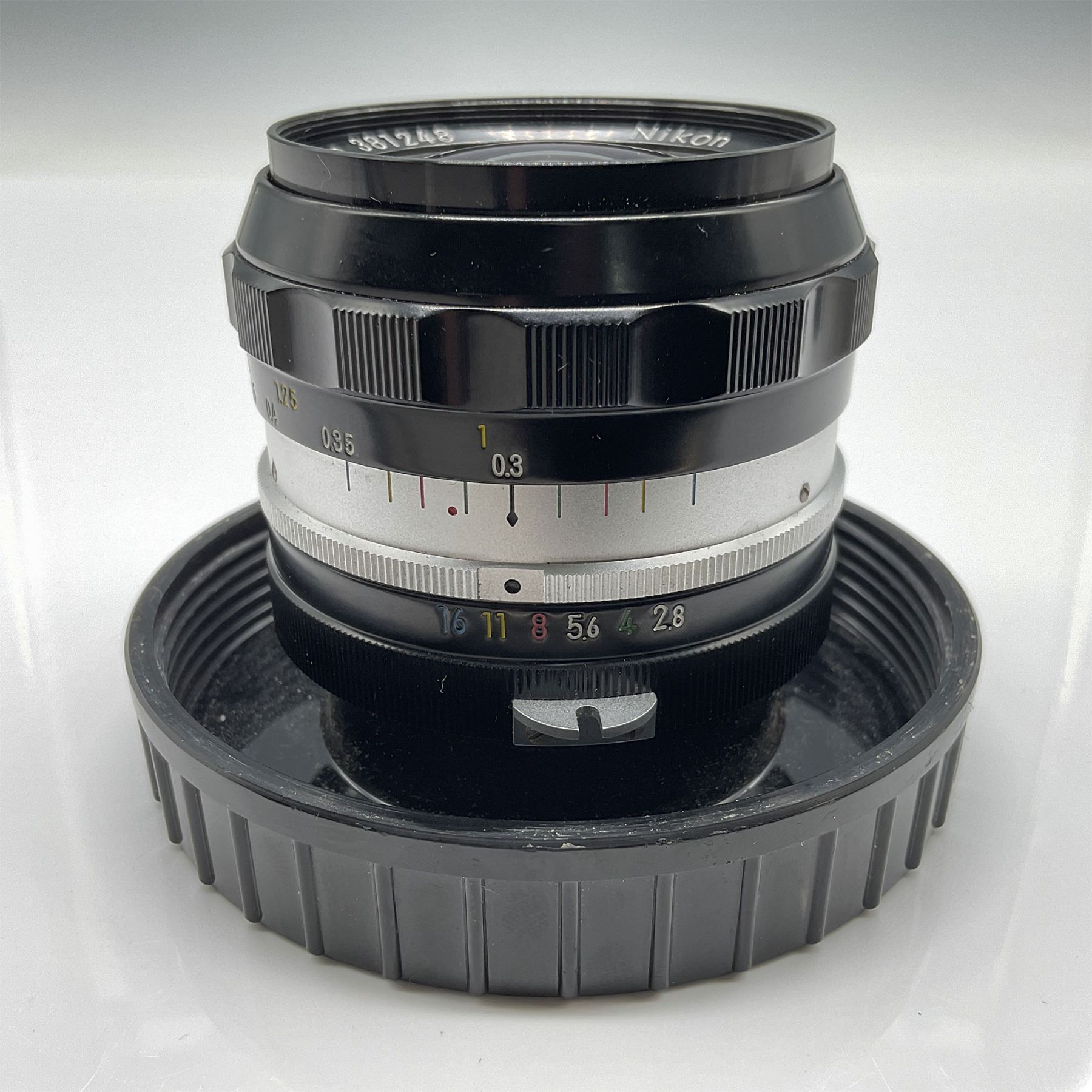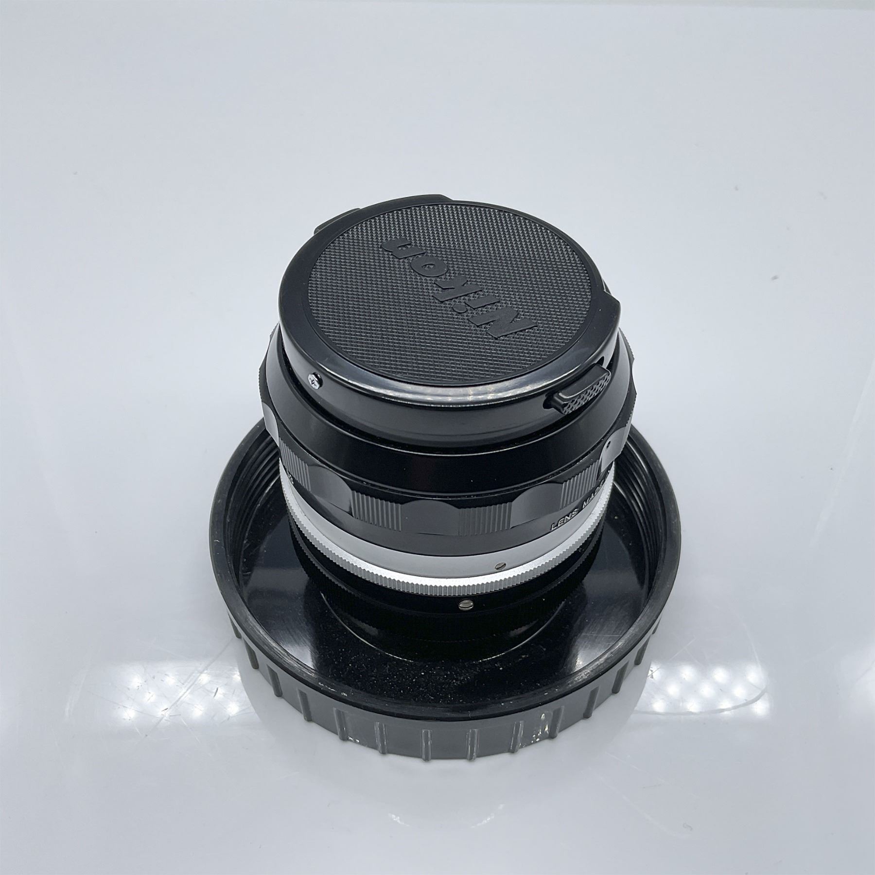 Vintage Nikon Nikkor-NC Auto 24mm f/2.8 wide-angle lens, serial number 381248, made in Japan. This lens features a 52mm filter thread, precise aperture control, and multi-coated optics for superior image quality. Includes the original plastic Nikon display case and front lens cap. Measures approximately 2.75"H when extended. A highly collectible and functional piece for photography enthusiasts and Nikon collectors alike.