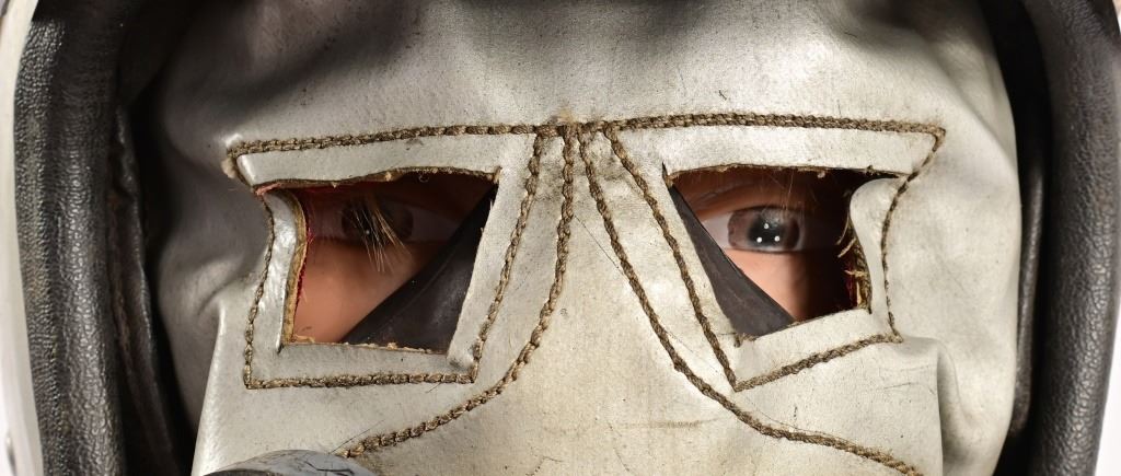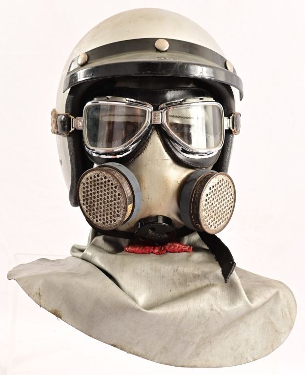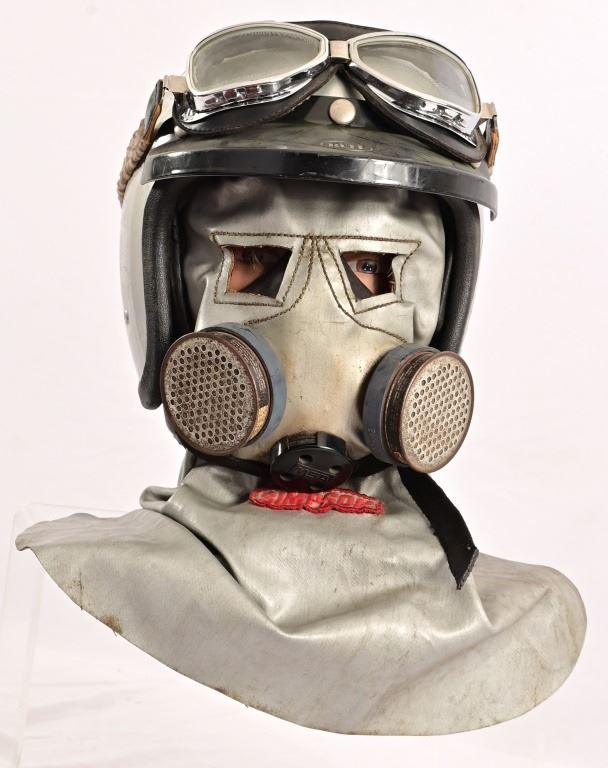 Vintage Bell Helmet, Simpson Nitro drag racing fire mask, and goggles.
