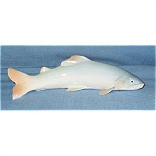 This rare bone china fish is marked; Noritake Bone China/with the lantern and leaf mark, Nippon/Toki/Kaisha. As beautiful as this piece is it does have one small chip in its lower tail, but a great piece all the same. It measures 8 inches long and 2 inches wide with fins.<BR>SH & Ins. will be quoted after orders placed. If you have any questions please contact me and thank you for looking.