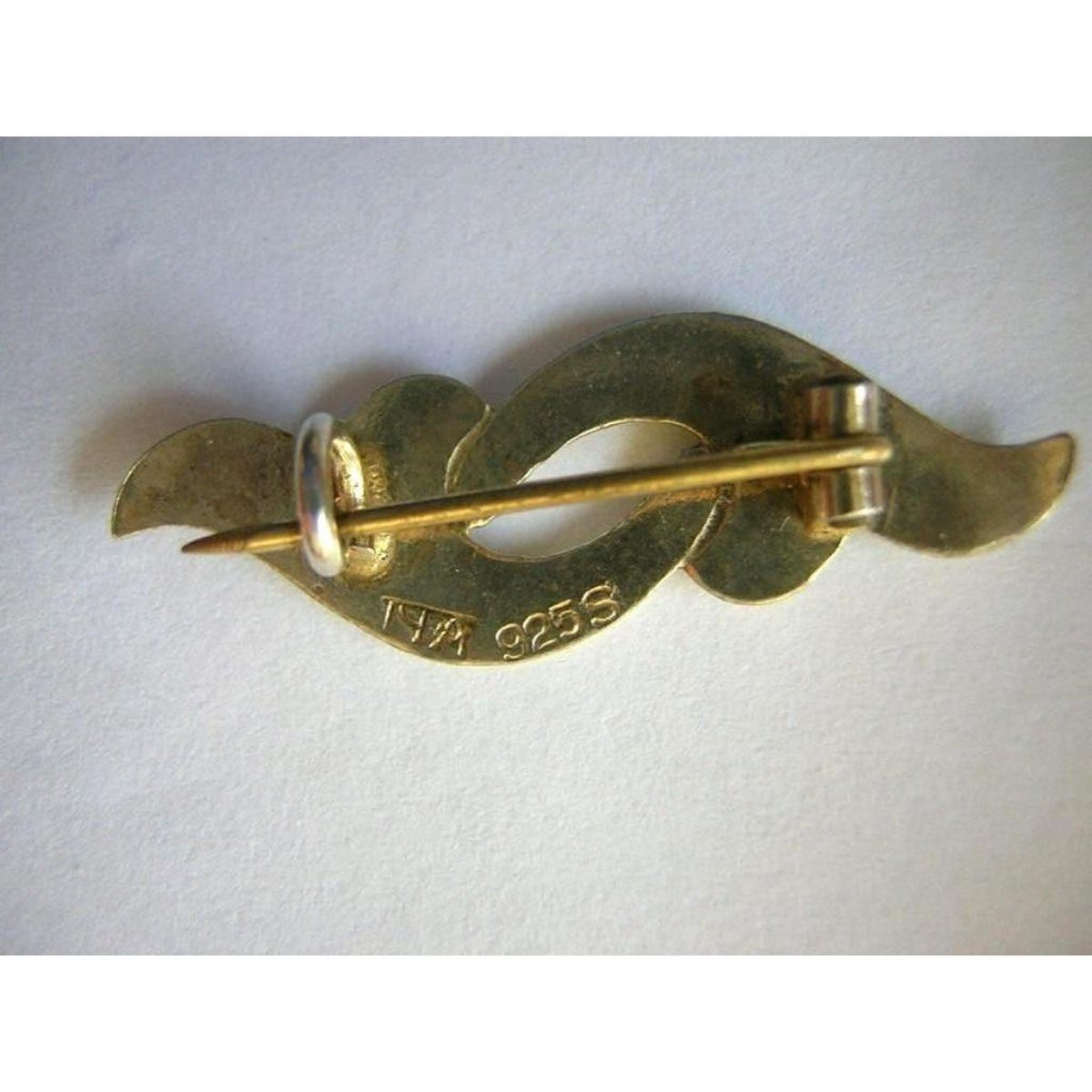 Vintage Norway gilded sterling silver & enamel pin, stamped  925 & with Andersen & Scheinpflug hallmark.Â