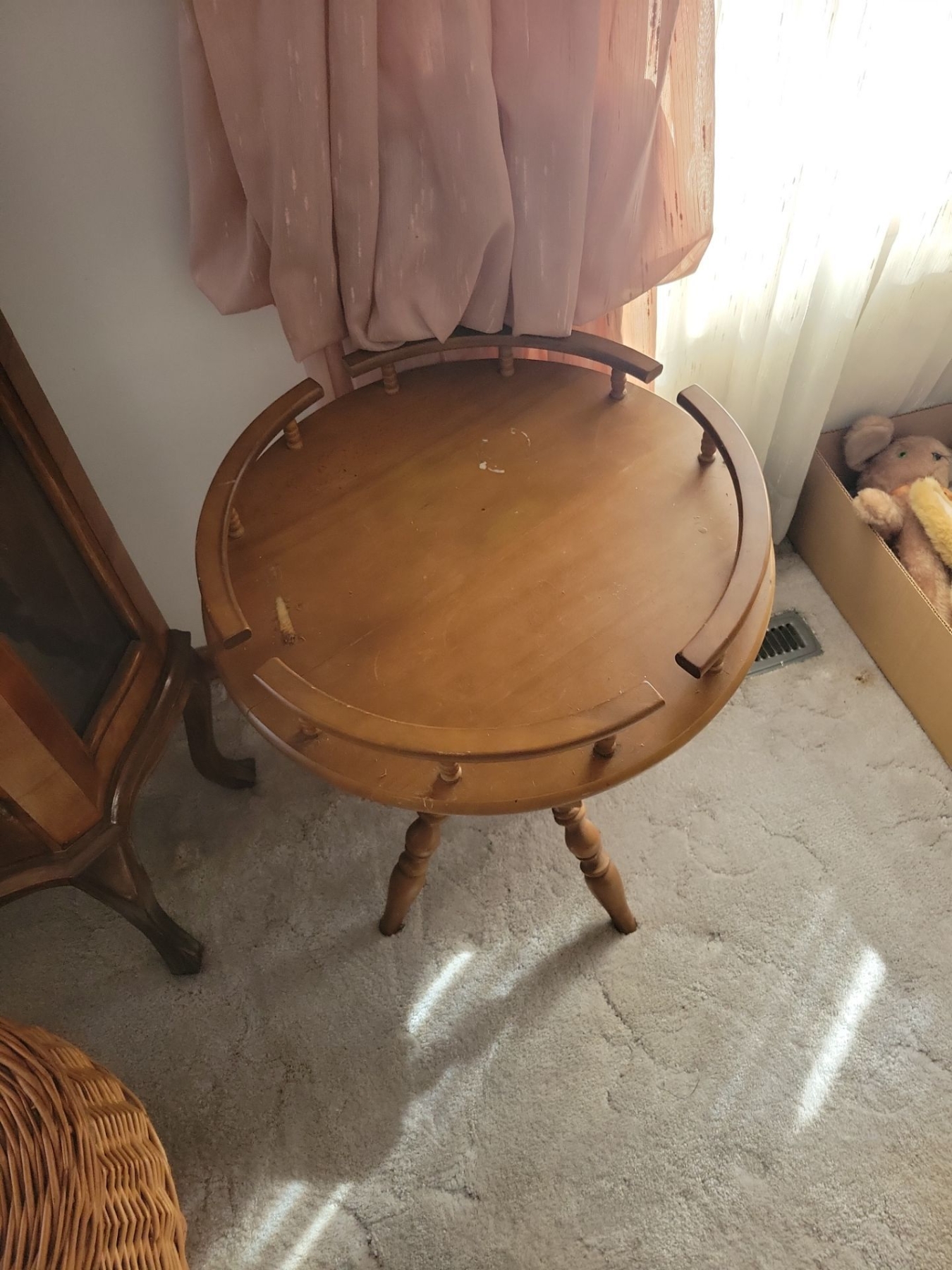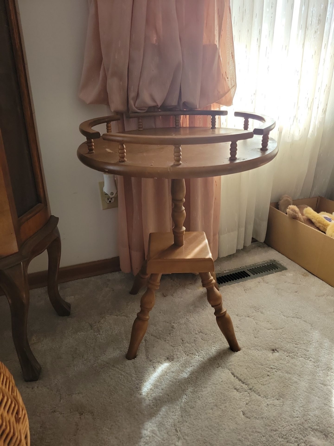 Vintage Oak Round End Table w/ Spindle Legs 31T