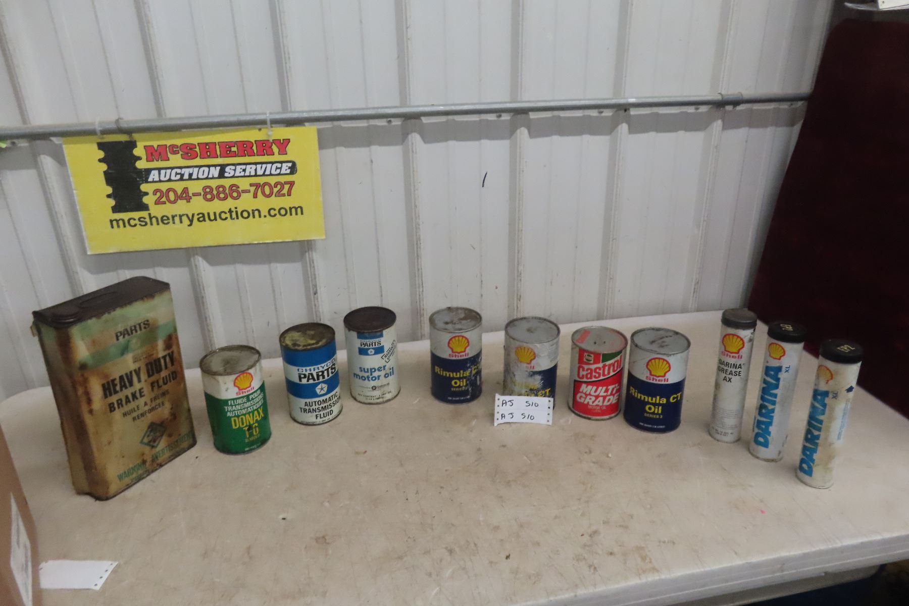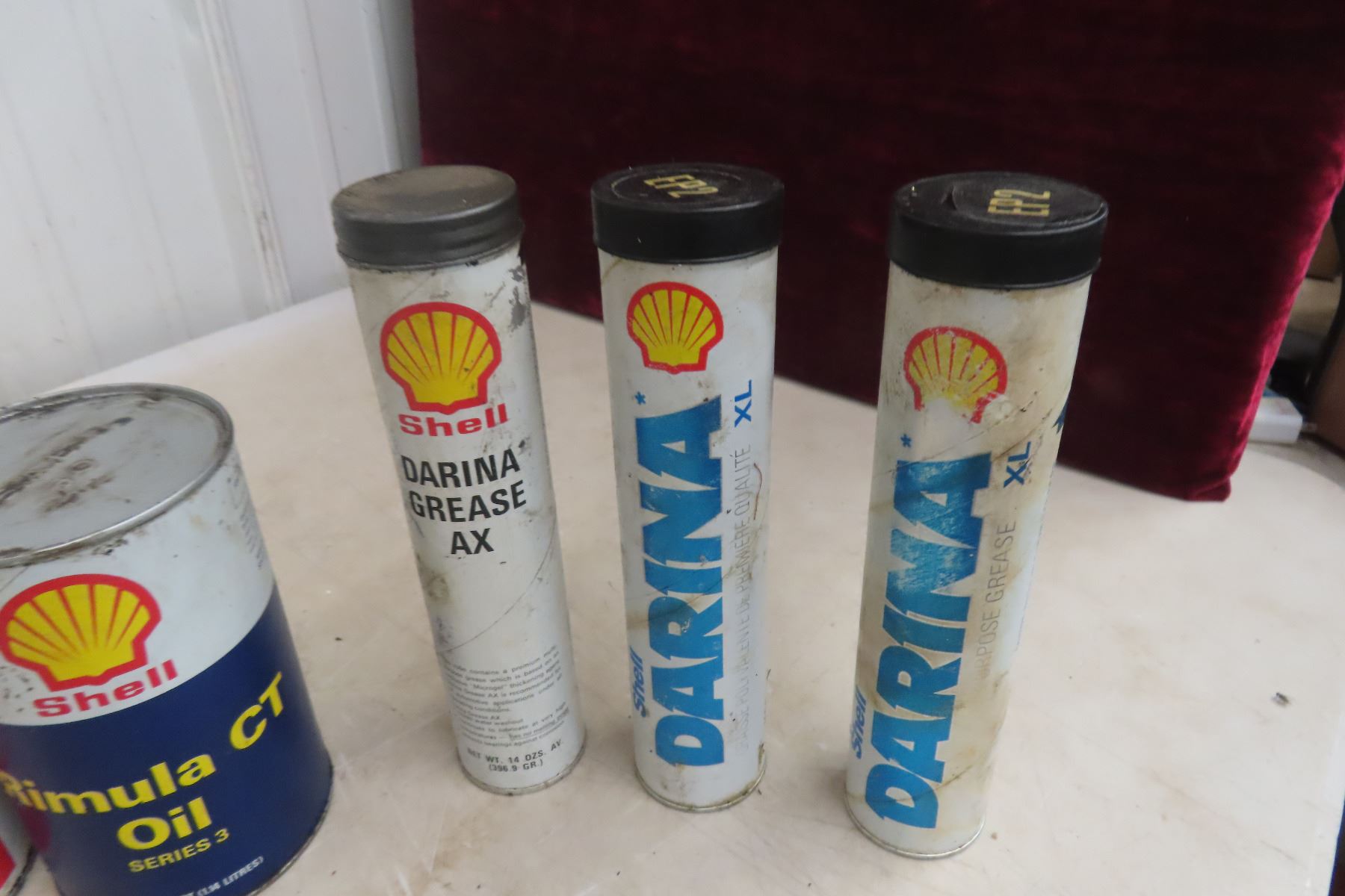 Vintage Oil Cans & Grease Tubes Most Full of Product. Shell, Chrystco Control, only 3 empty