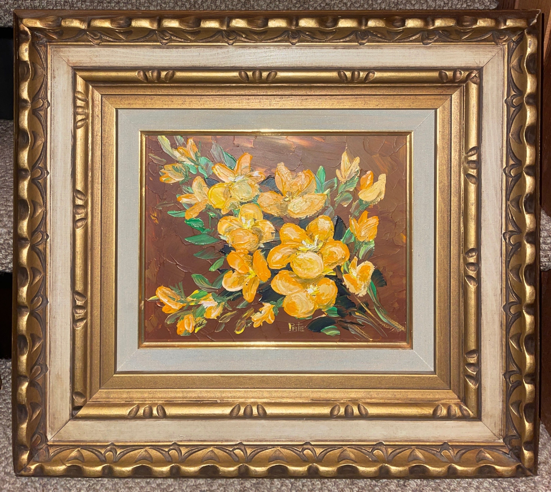Vintage Oil Painting on Canvas Floral by Window by "Pate" 20" x 17"tall