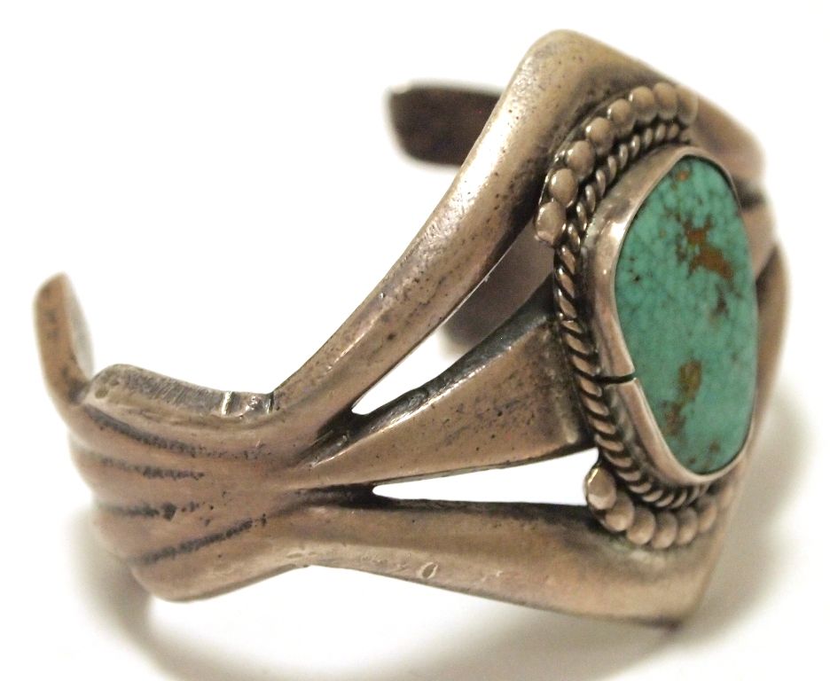 Vintage Old Pawn Navajo Kingman Turquoise Sterling Silver Sand Cast Cuff Bracelet