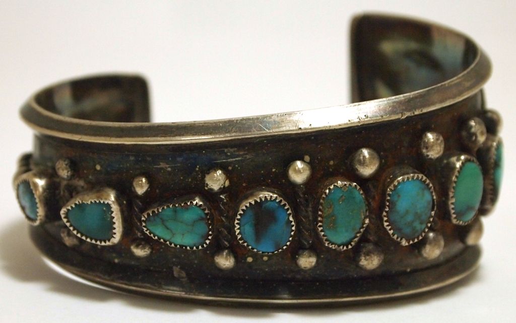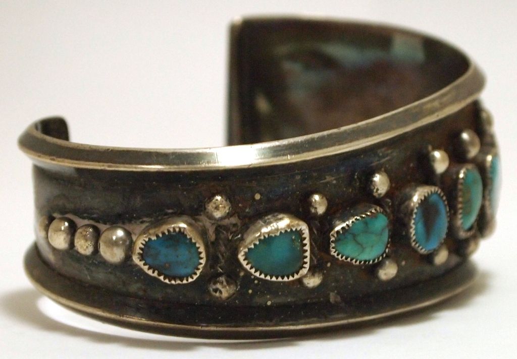Vintage Old Pawn Navajo Turquoise Sterling Silver Tapering Cuff Bracelet