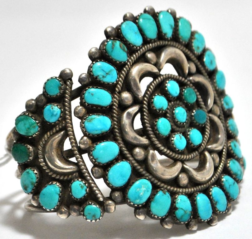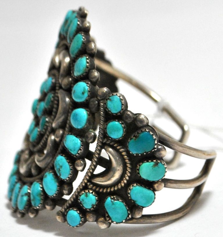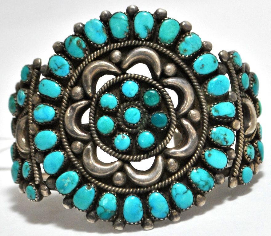 Vintage Old Pawn Turquoise Needlepoint Sterling Silver Cuff Bracelet