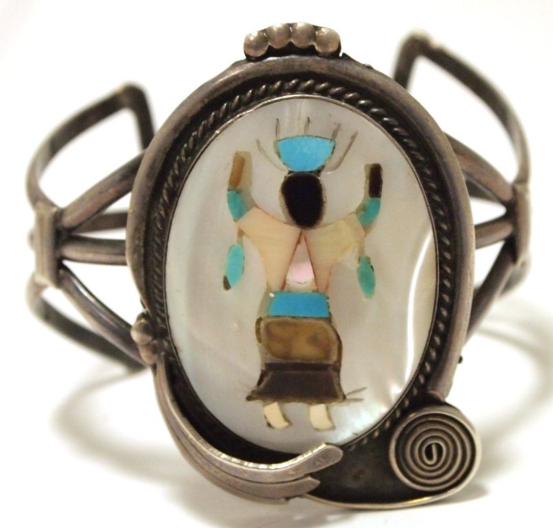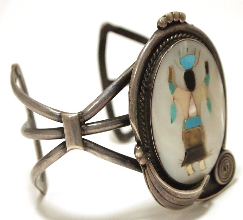 Vintage Old Pawn Zuni Multi-Stone Inlay Apache Dancer Sterling Silver Cuff Bracelet - KY Bill