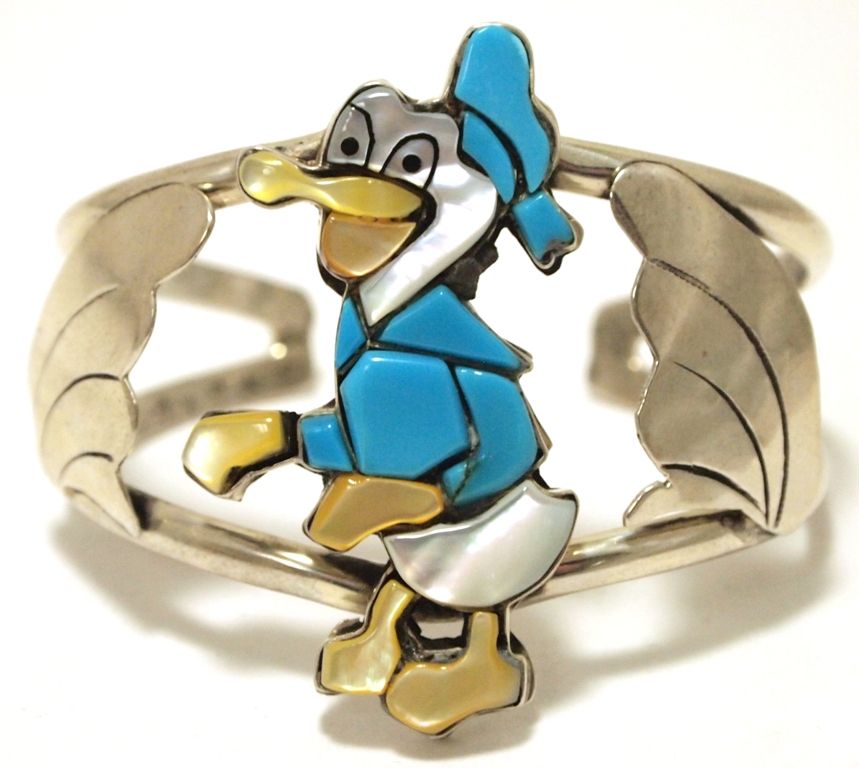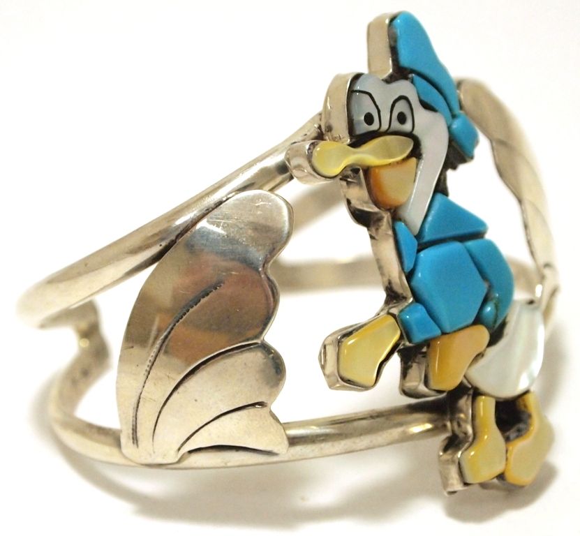 Vintage Old Pawn Zuni Multi-Stone Inlay Donald Duck Sterling Silver Cuff Bracelet