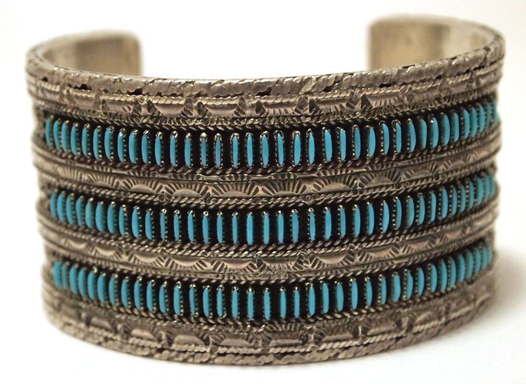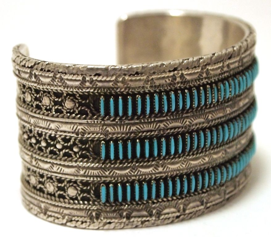 Vintage Old Pawn Zuni Turquoise Petit Point Sterling Silver Cuff Bracelet - HM