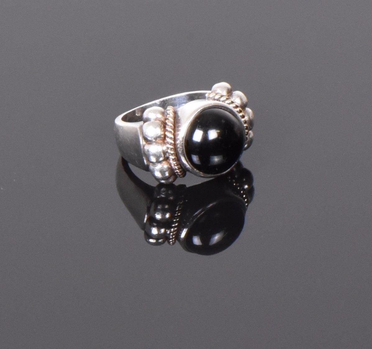 Vintage Onyx Sterling Silver Ring with 14k Gold Rope. Ring Size: 7 Silver And Gold Tested. Estimated more than 50 yrs old. 925 Sterling Silver consisting of 92.5% silver and 7.5% copper. Tested Positive using Nitric Acid Chemical Scratch Test, Cloth Rub Test, Smell Test, and Magnet Test. Markings of 925 or Sterling stamp. The reason silver needs to be combined with other metals is that it is very difficult to make great designs with just pure silver, which is very soft and malleable. A bit of hardness has to be introduced by adding other metals such as copper. That is why jewelers are capable of making the most intricate an complex designs with 925 Sterling Silver. Silver is one of the most valuable elements next to gold. Mexico is the leading producer of sliver, followed by the United States, Canada, Australia, Spain, Peru, and Russia. Many countries do not require their precious metal items to be stamped and therefore we test to ensure we accurately represent the product. Size: See Ruler Photo. (Photos Represent The Condition Of The Lot.)