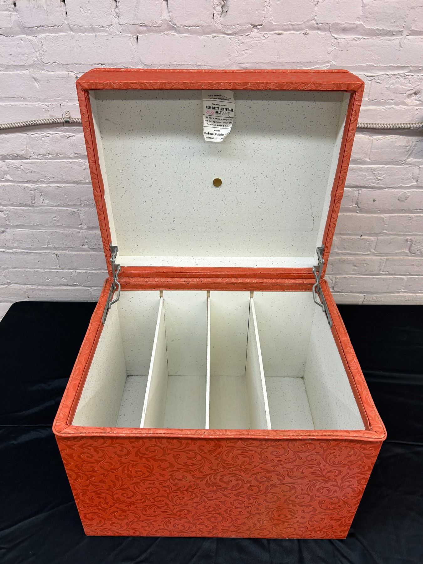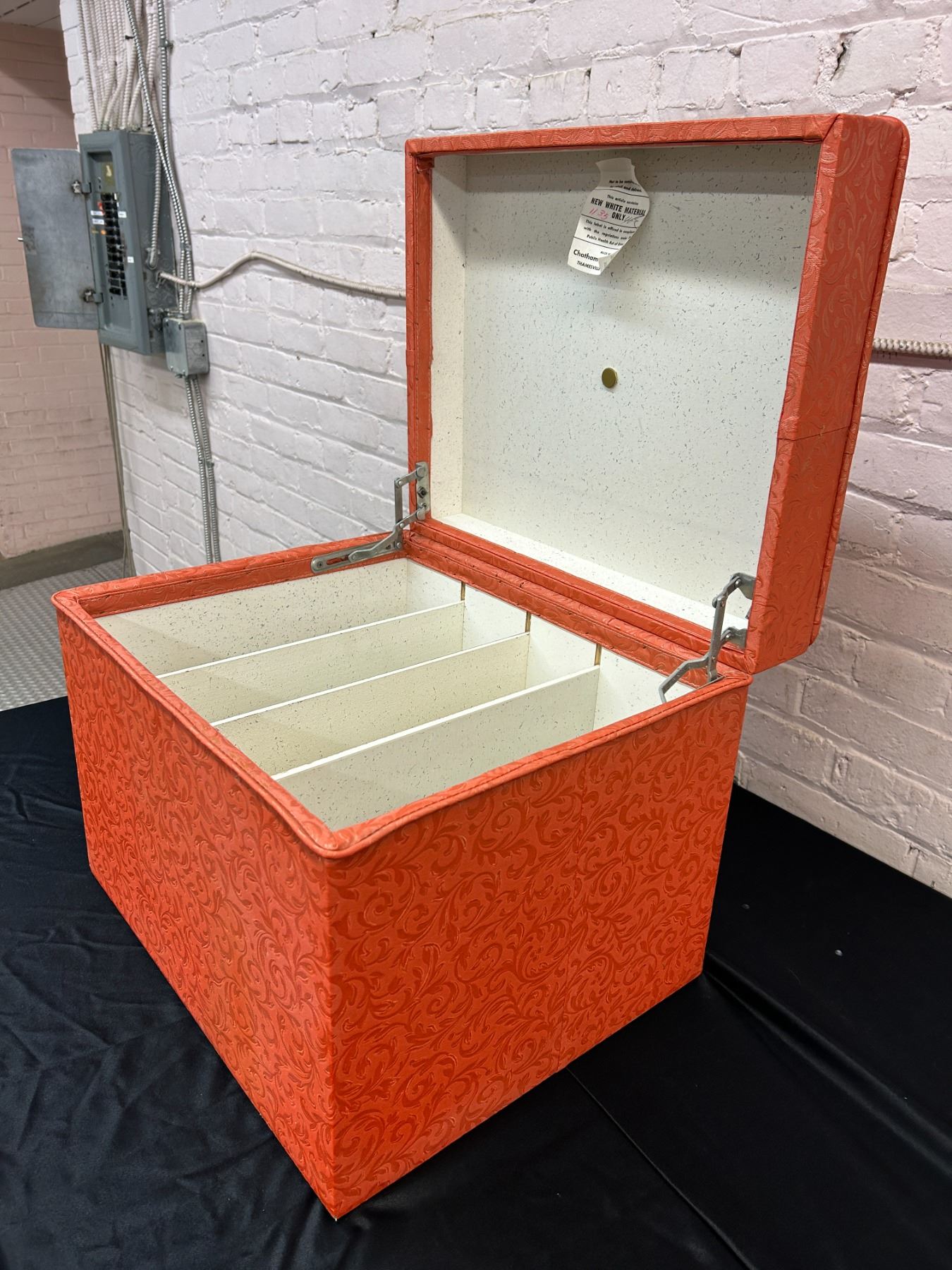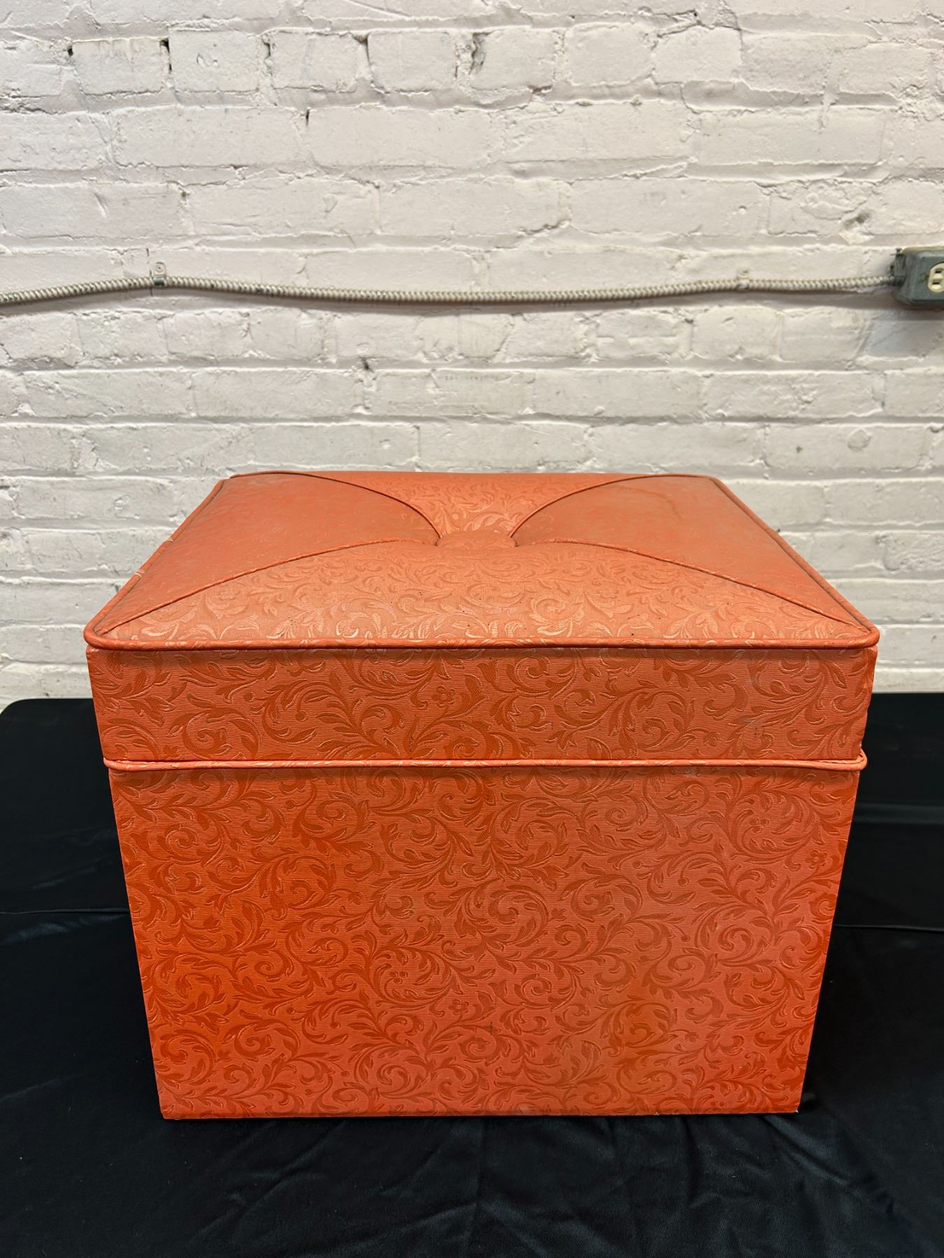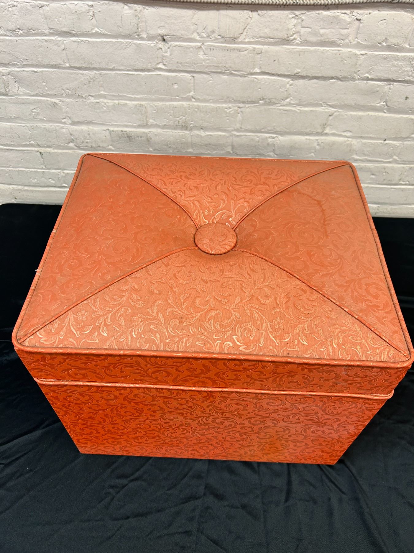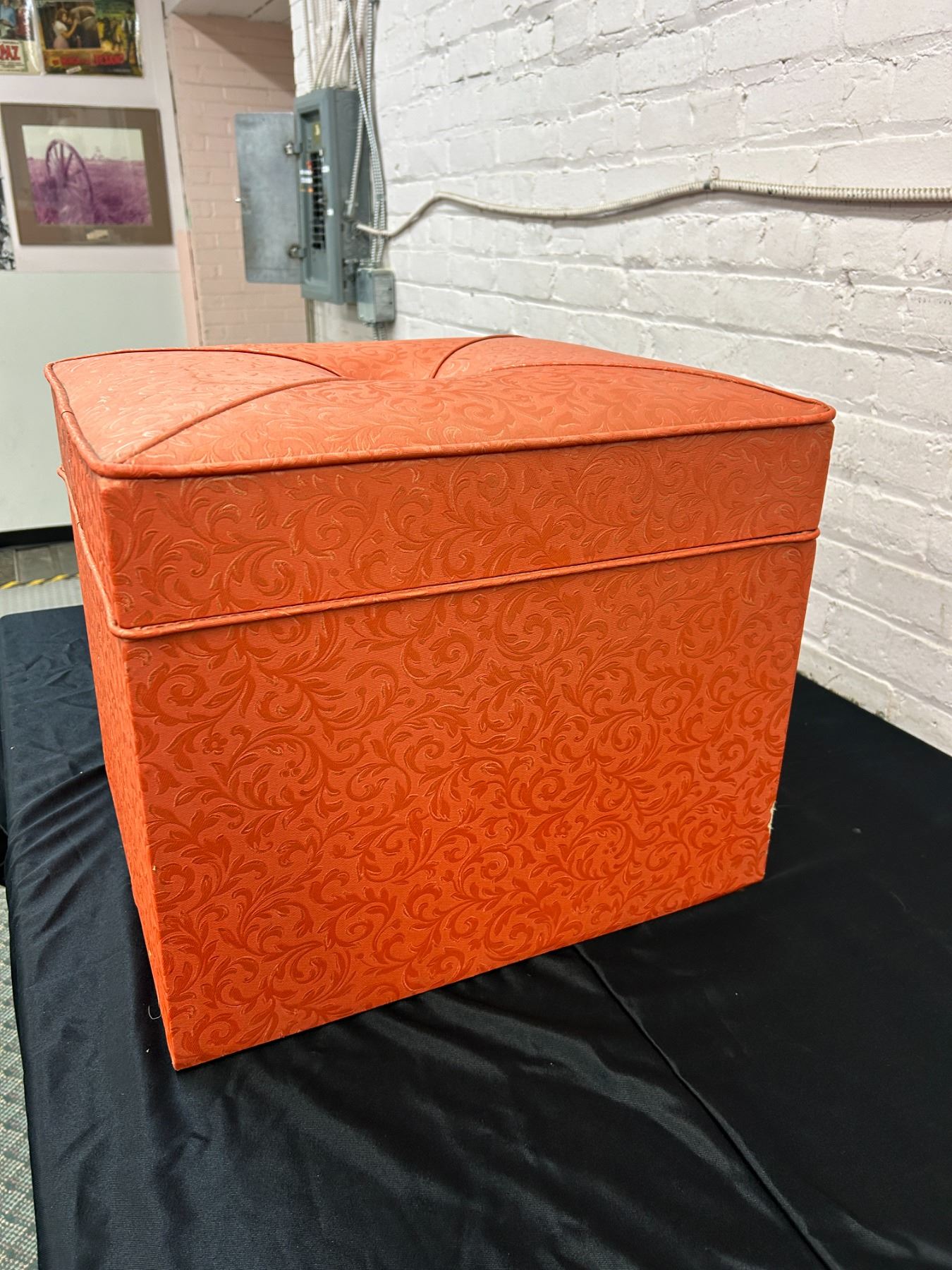 Vintage Orange Record Storage Ottoman 19  x 15  x 16