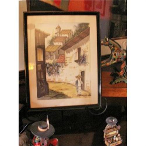 The Barrios of Old Mexico" Original hand-painted watercolor unsigned by artist unless on verso. In original frame which has not been tampered with. Measurement: 10" x 13" The colors are vibrant and the artist shows excellent watercolor mastery and skill along with precise architectural rendering. Circa: 50's - 60's.