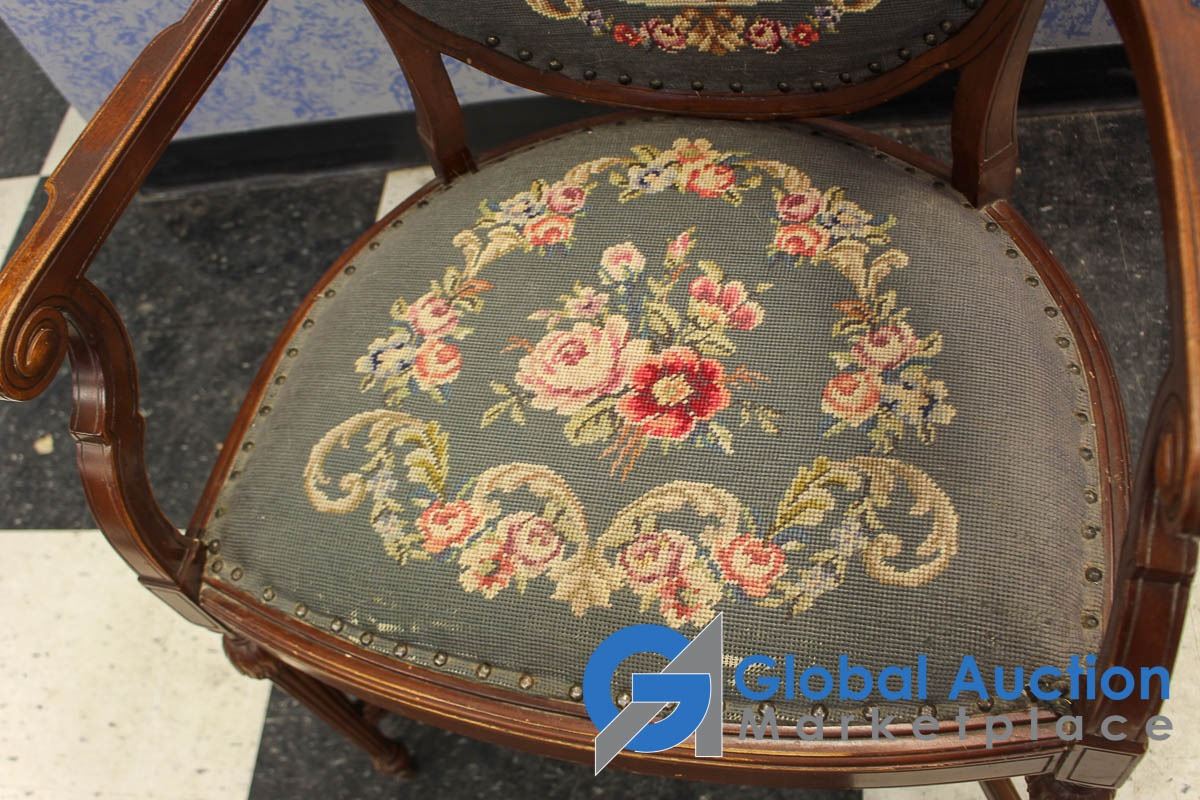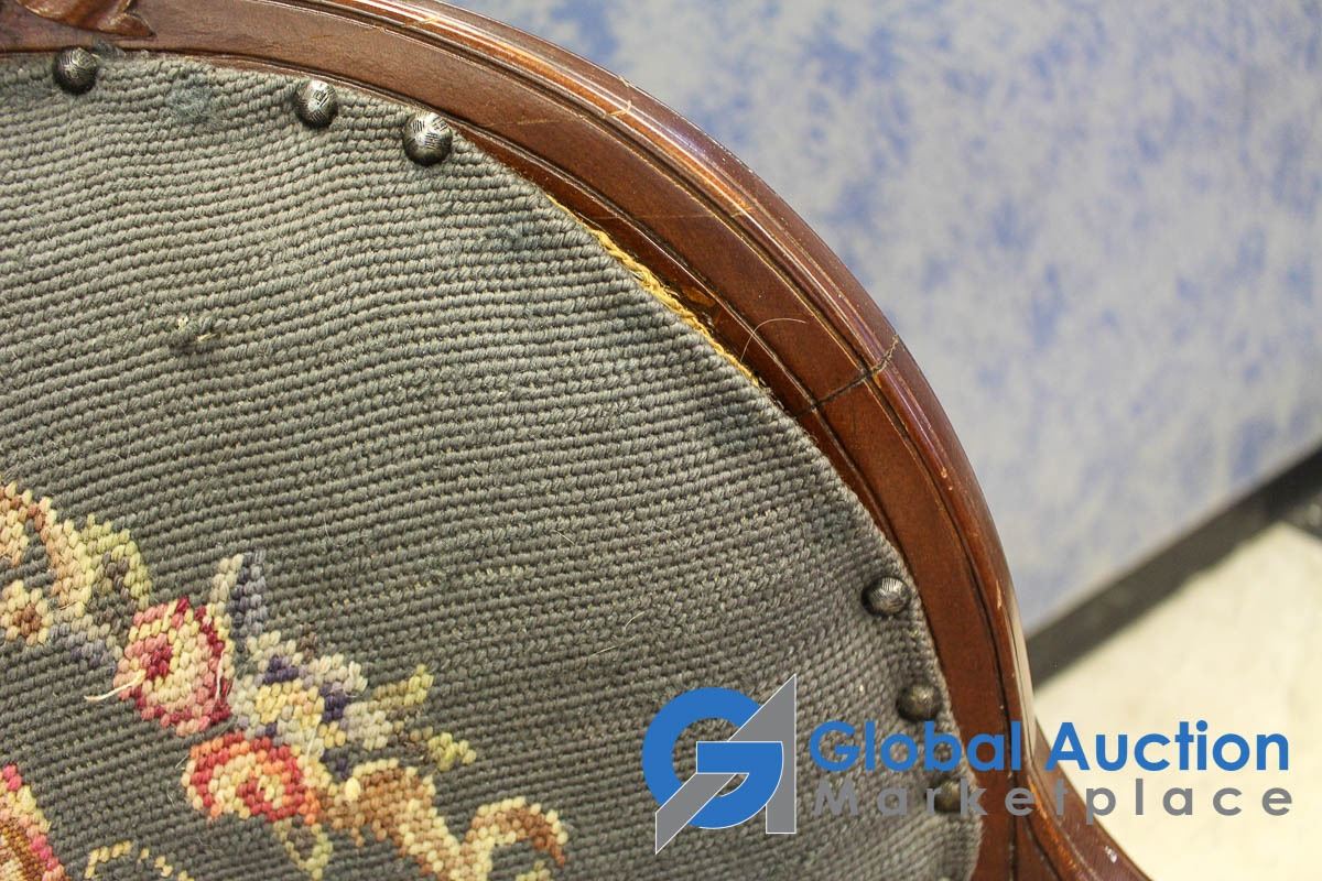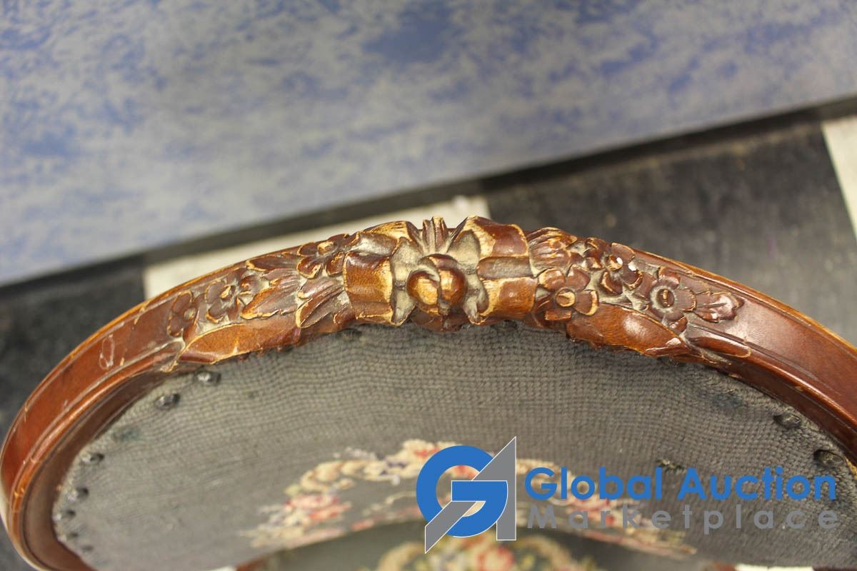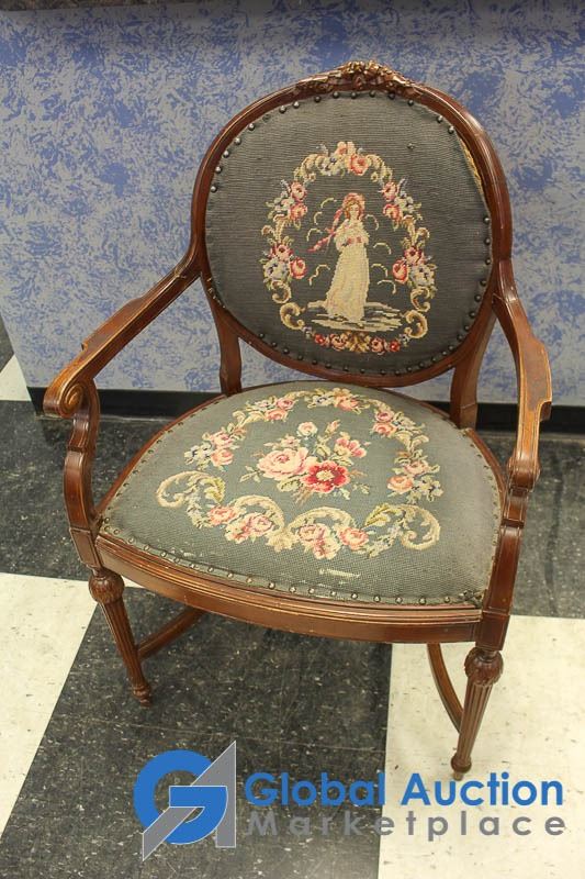 **Vintage Ornate French Provincial Solid Wood Sittng Chair w/Cross Stitched Upholstery