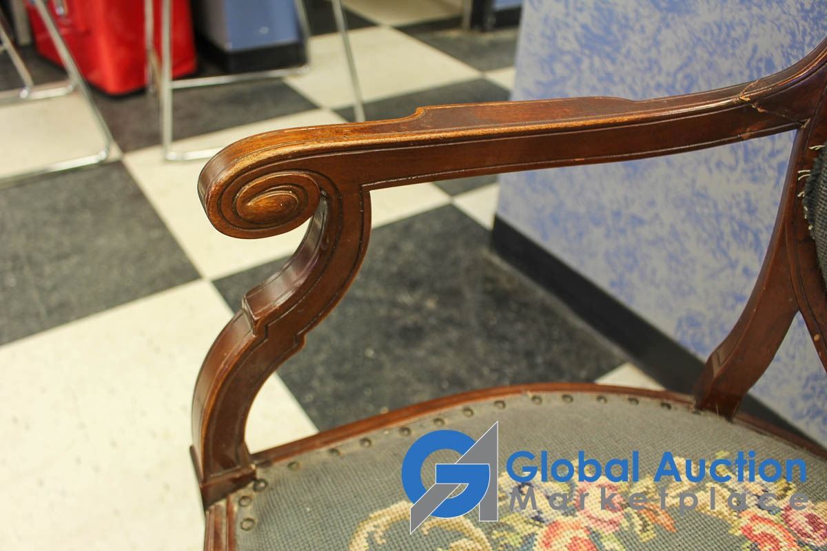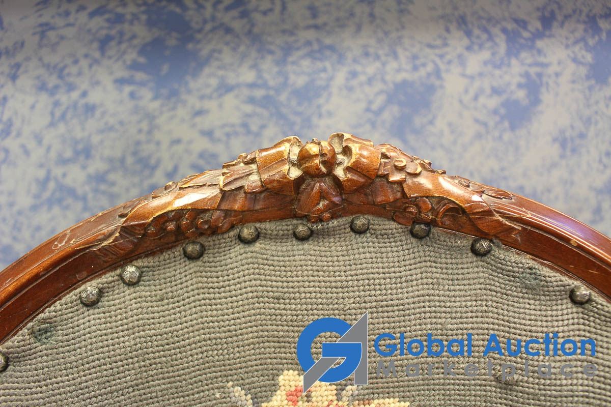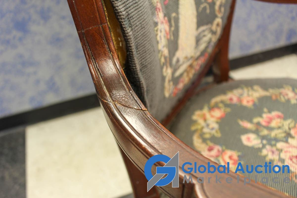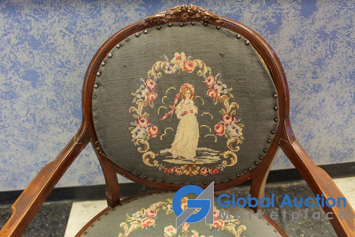 **Vintage Ornate French Provincial Solid Wood Sittng Chair w/Cross Stitched Upholstery