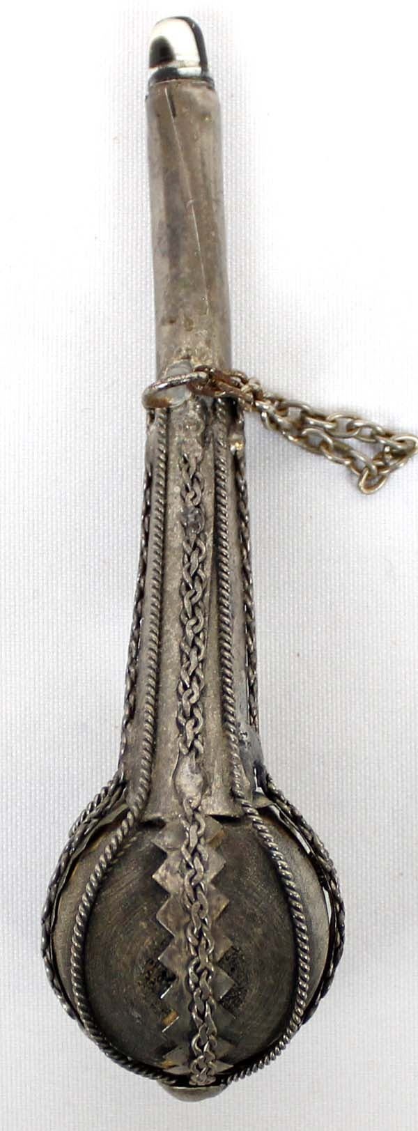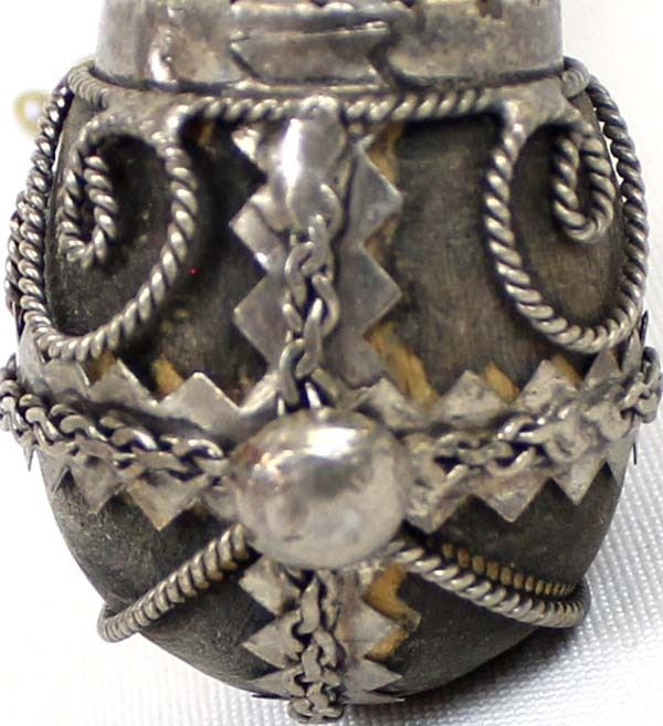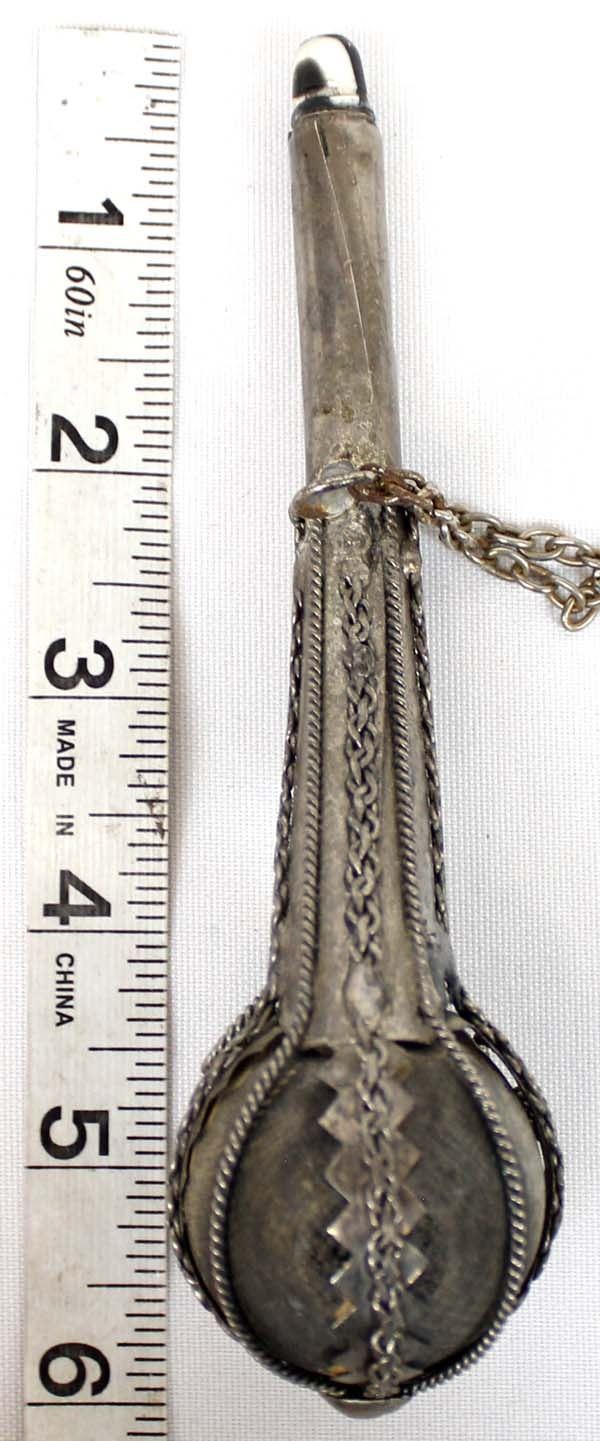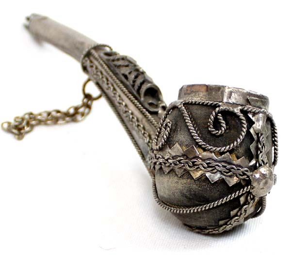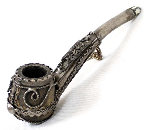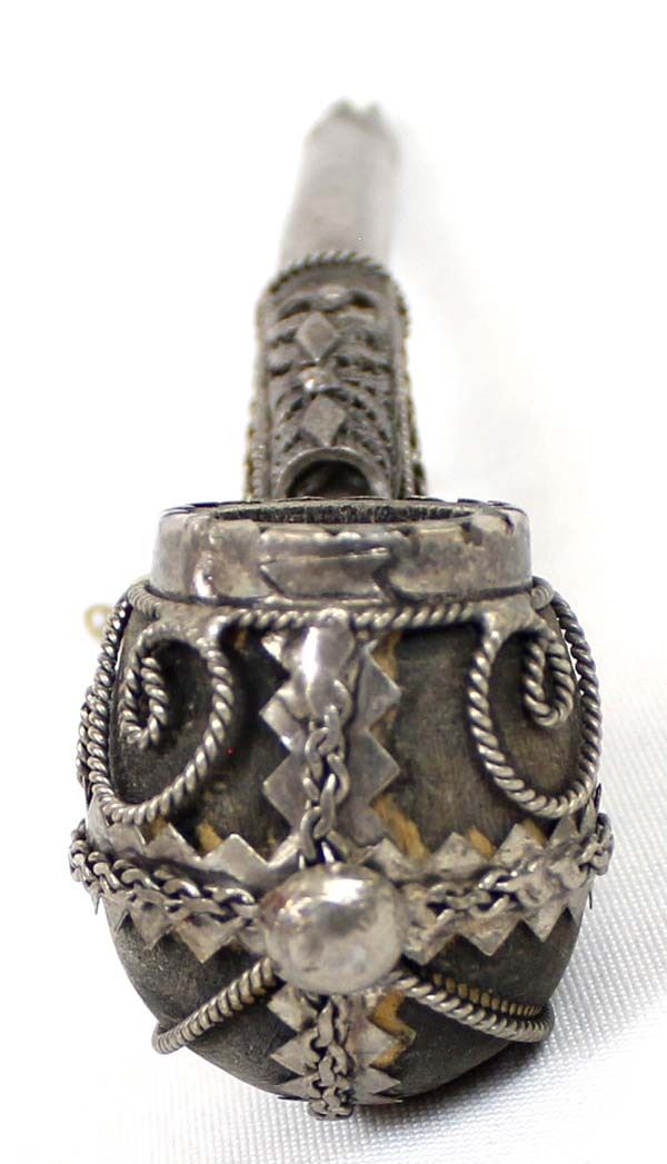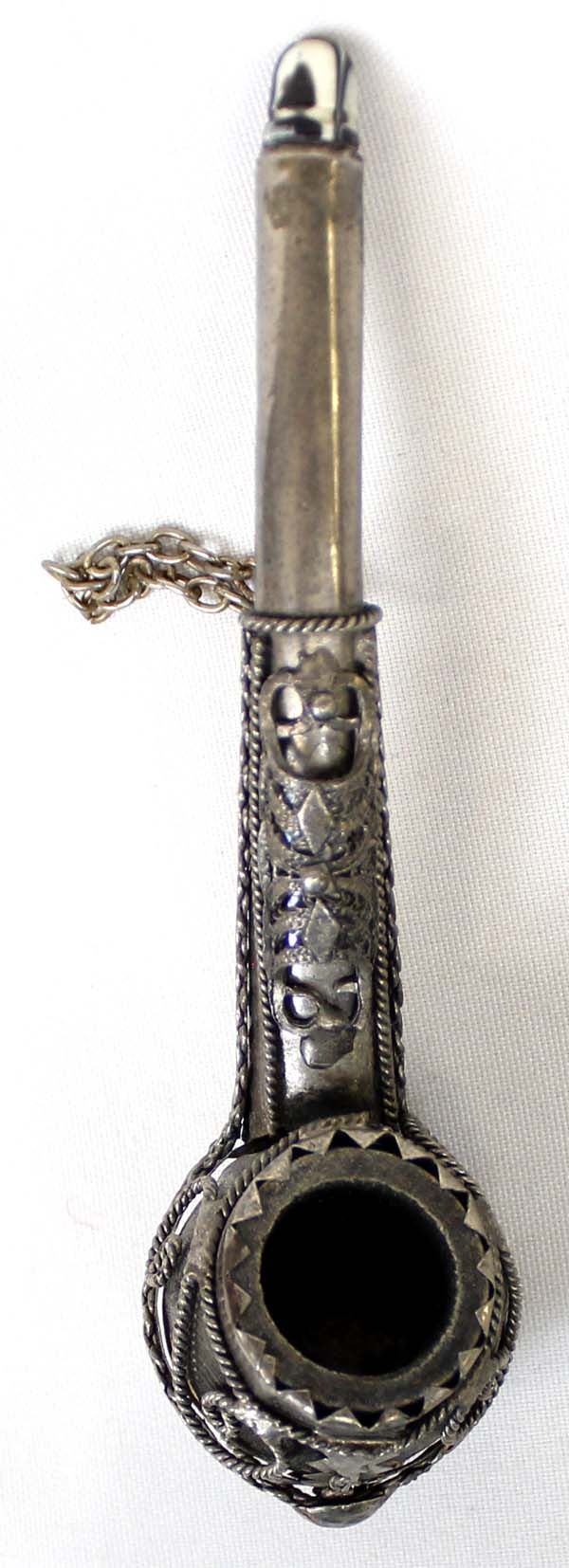 Vintage Ornate Tibetan Pipe, measures 6''L, dzi bead embellished mouthpiece