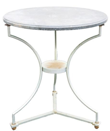 Metal table with three legs, condition commensurate with age.