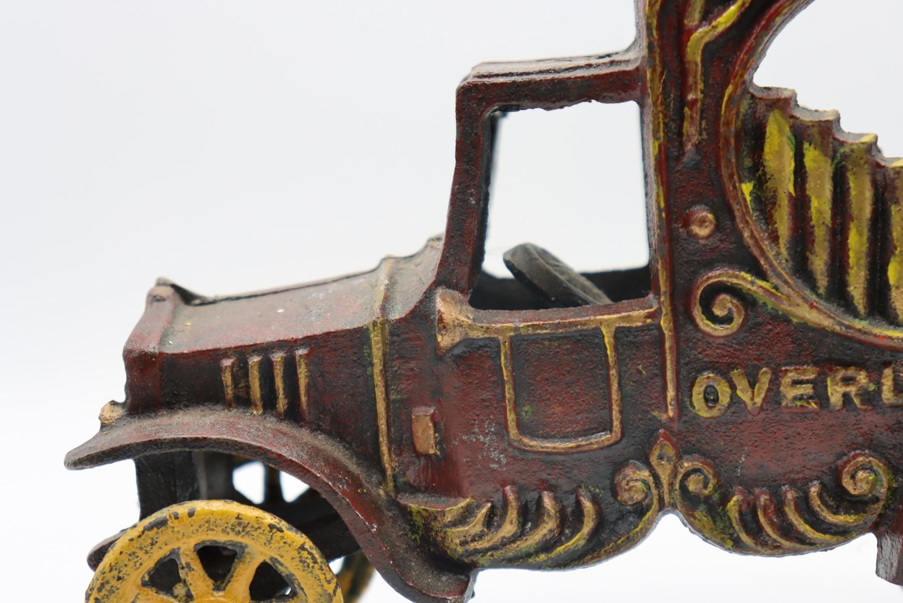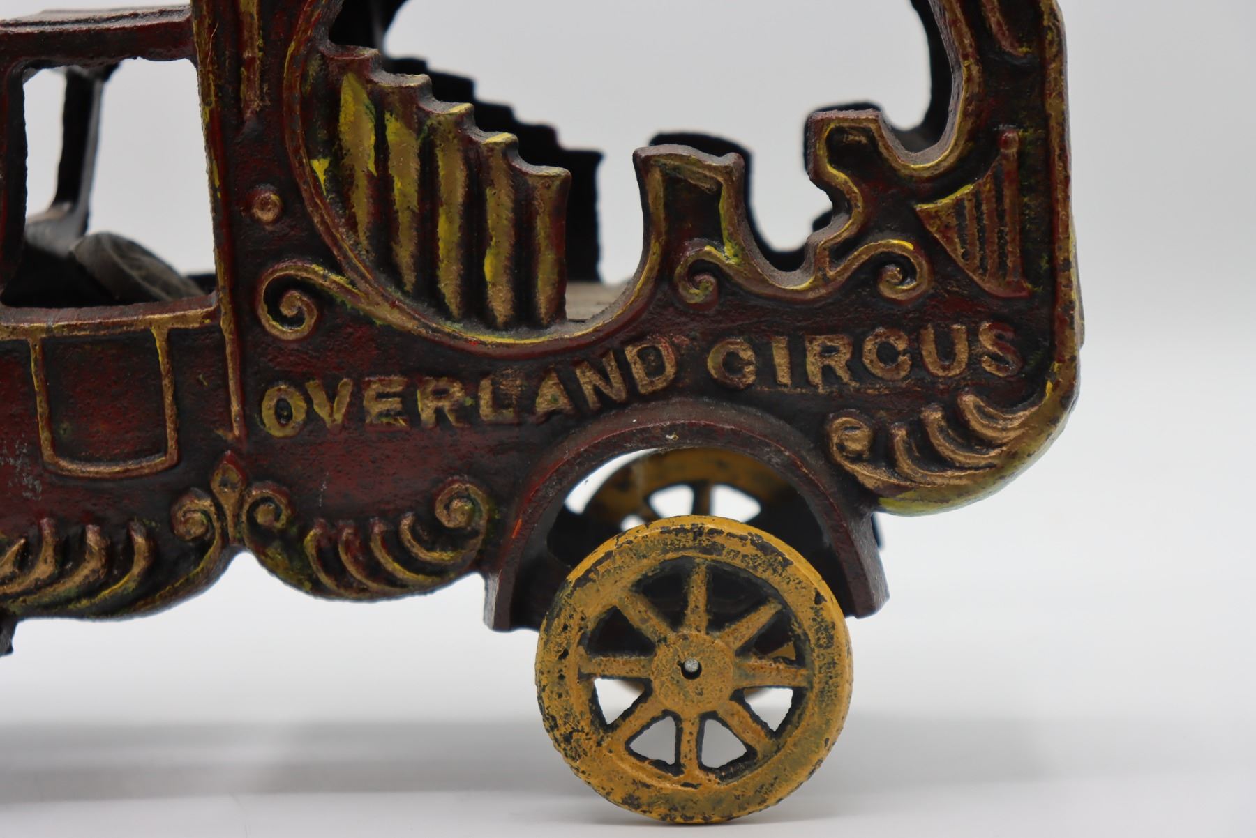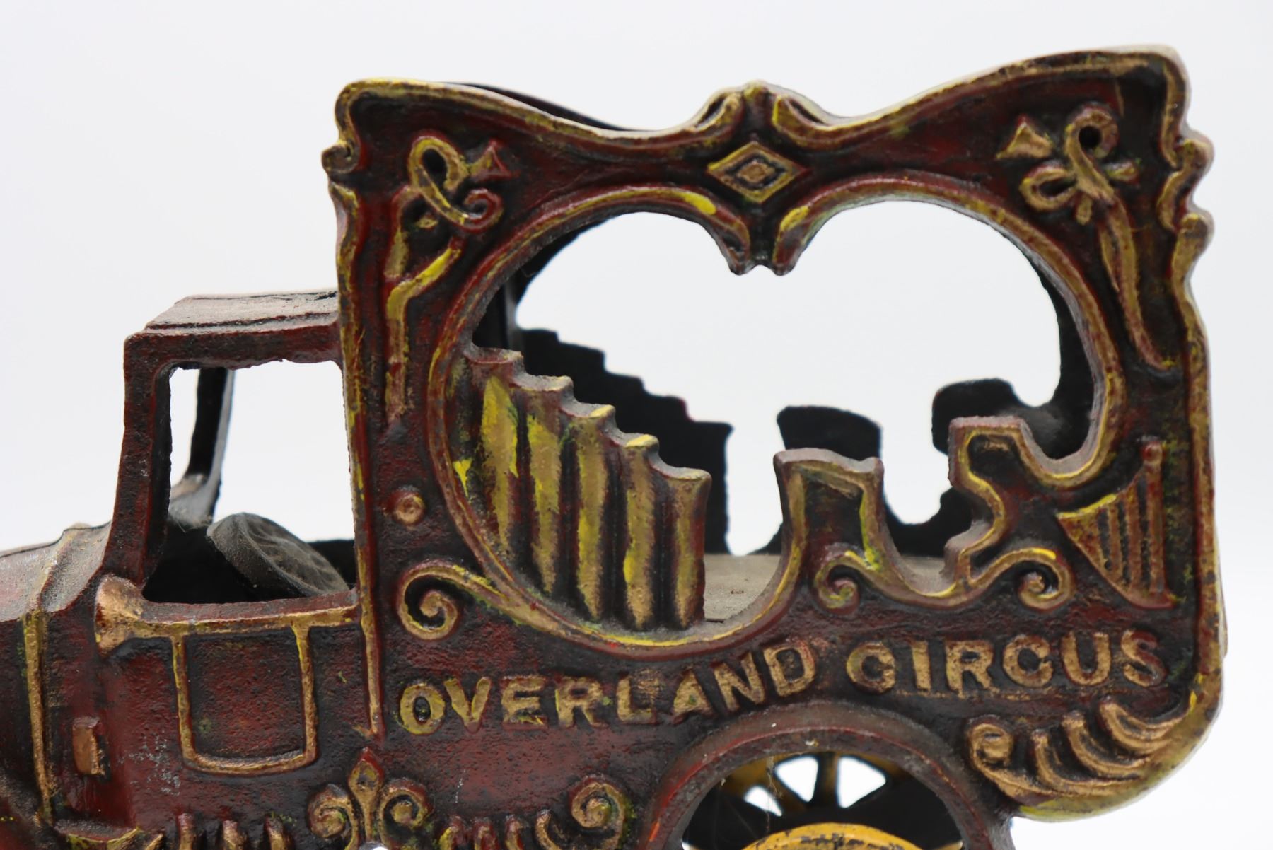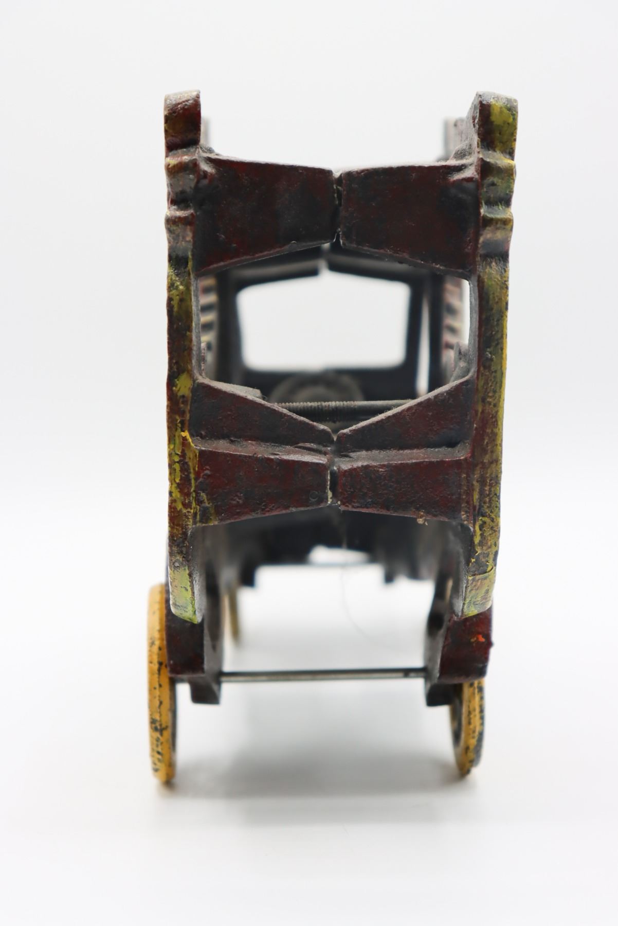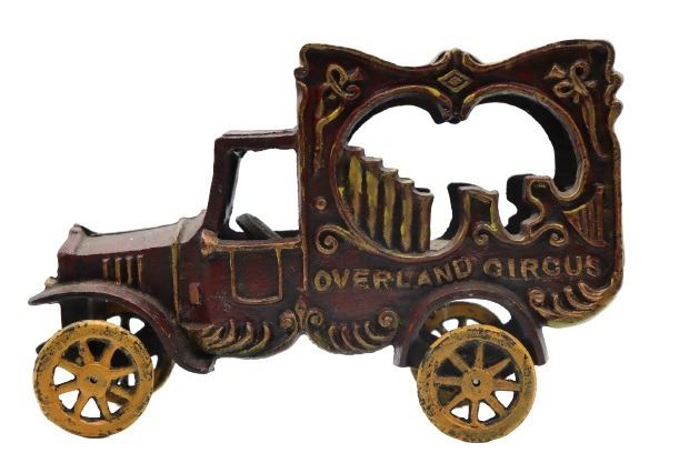 Vintage reproduction musical pipe wagon, likely by the Kenton Toy Manufacturing Company of Kenton, Ohio, which made close to ten thousand cast iron toy designs. At one time it was the largest iron toy factory in the world.
