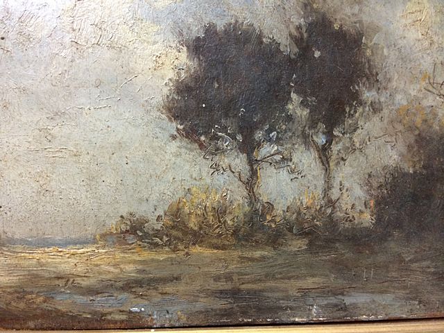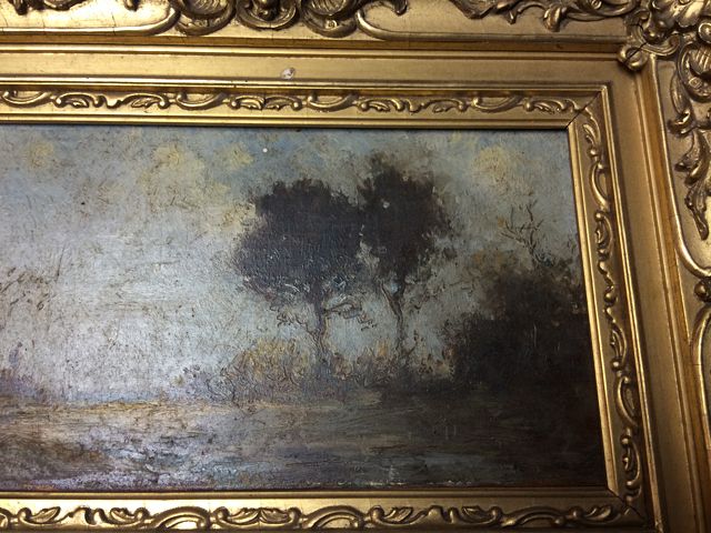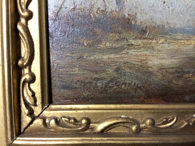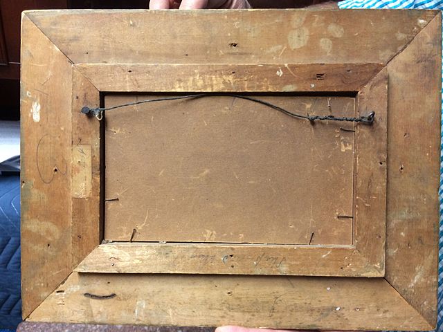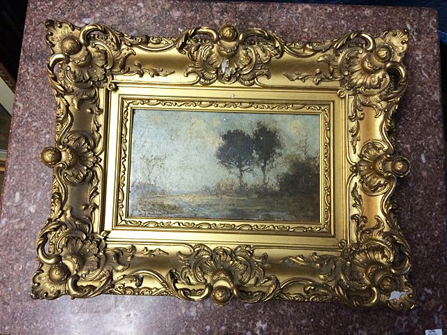 A real treasure! Vintage oil painting, signed in very ornate, antique gold gilt frame. The frame is in excellent condition, very important subject matter, has writing and label on back of frame.