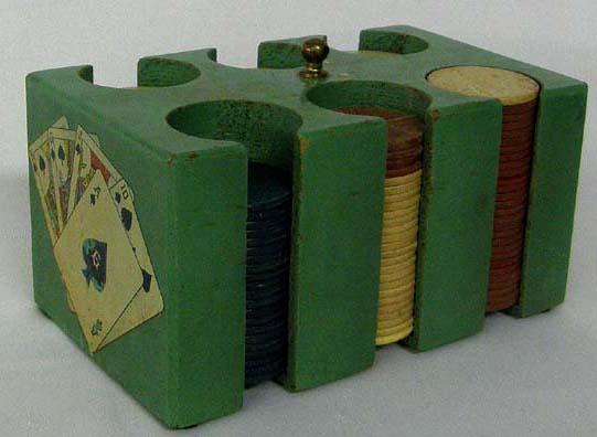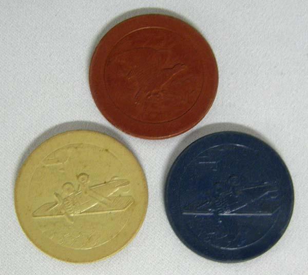 Paper Embossed Poker Chips and Carrier, embossed with airplanes, vintage, carrier measures approx. 3.25'' x 6 3/8'' chips are 1.5'' in diameter. SHI 25.