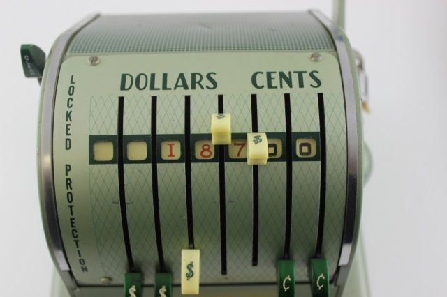 Vintage paymaster series complete with key and cover. In great shape with very little wear or tear. Cover is in great shape with no rips or tears. Handle is in great shape with no cracks.
