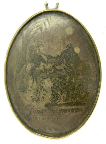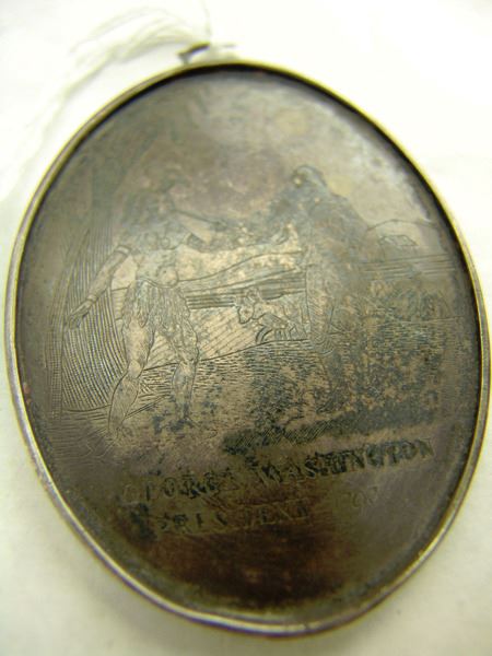 Ca. 1970s, Great old-looking oval silver(?) George Washington presidential peace medal. Good condition. 3-3/8" x 2-1/2"