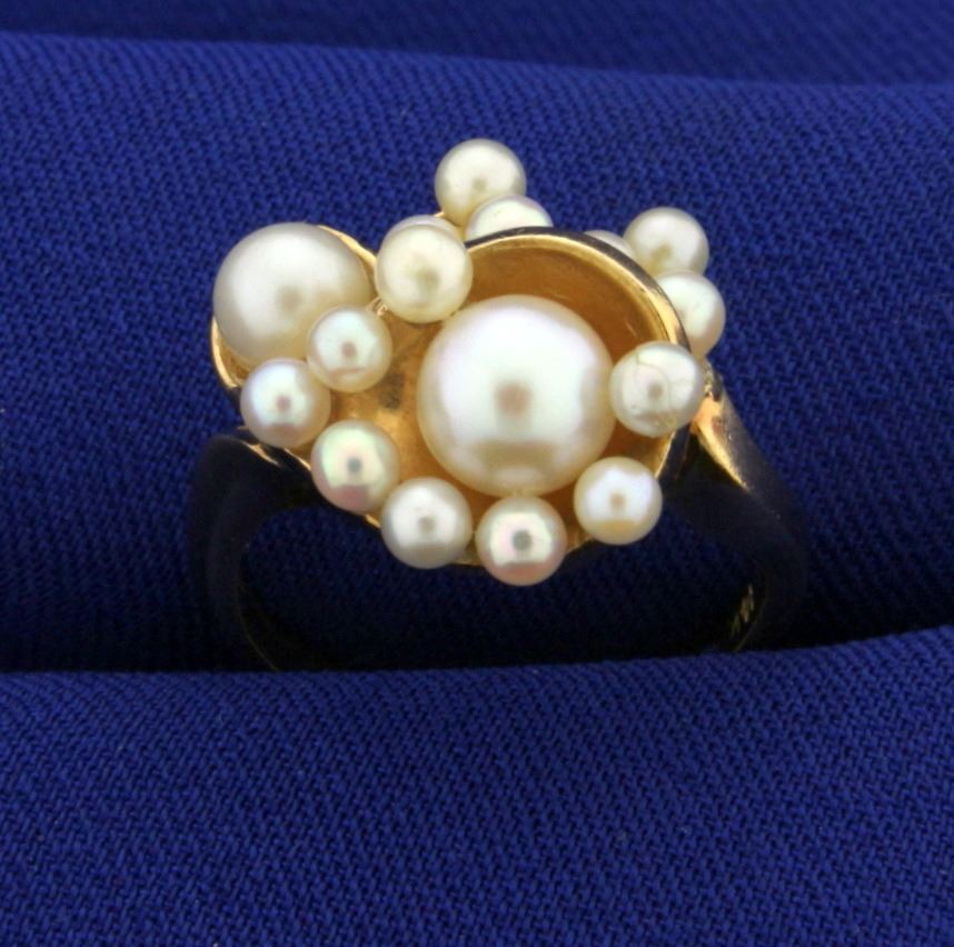 In 14k yellow gold, containing 16 pearls ranging from 3 to 6mm each. All pearls having amazing color and luster. Size 7. 6.6g