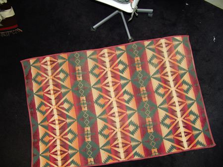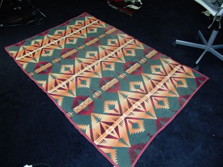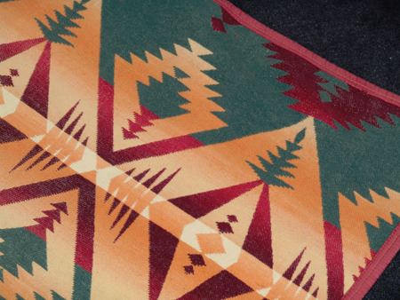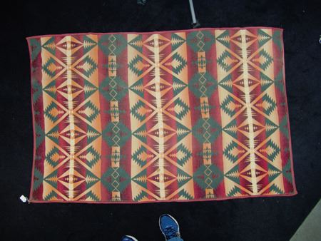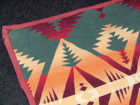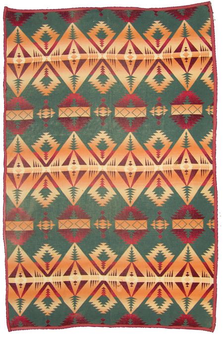 Early 1900s, Beautiful, gracefully faded old Pendleton blanket in classic two-sided native design. Looks like it was probably trimmed and re-edged at some point Good condition. 64" x 45"