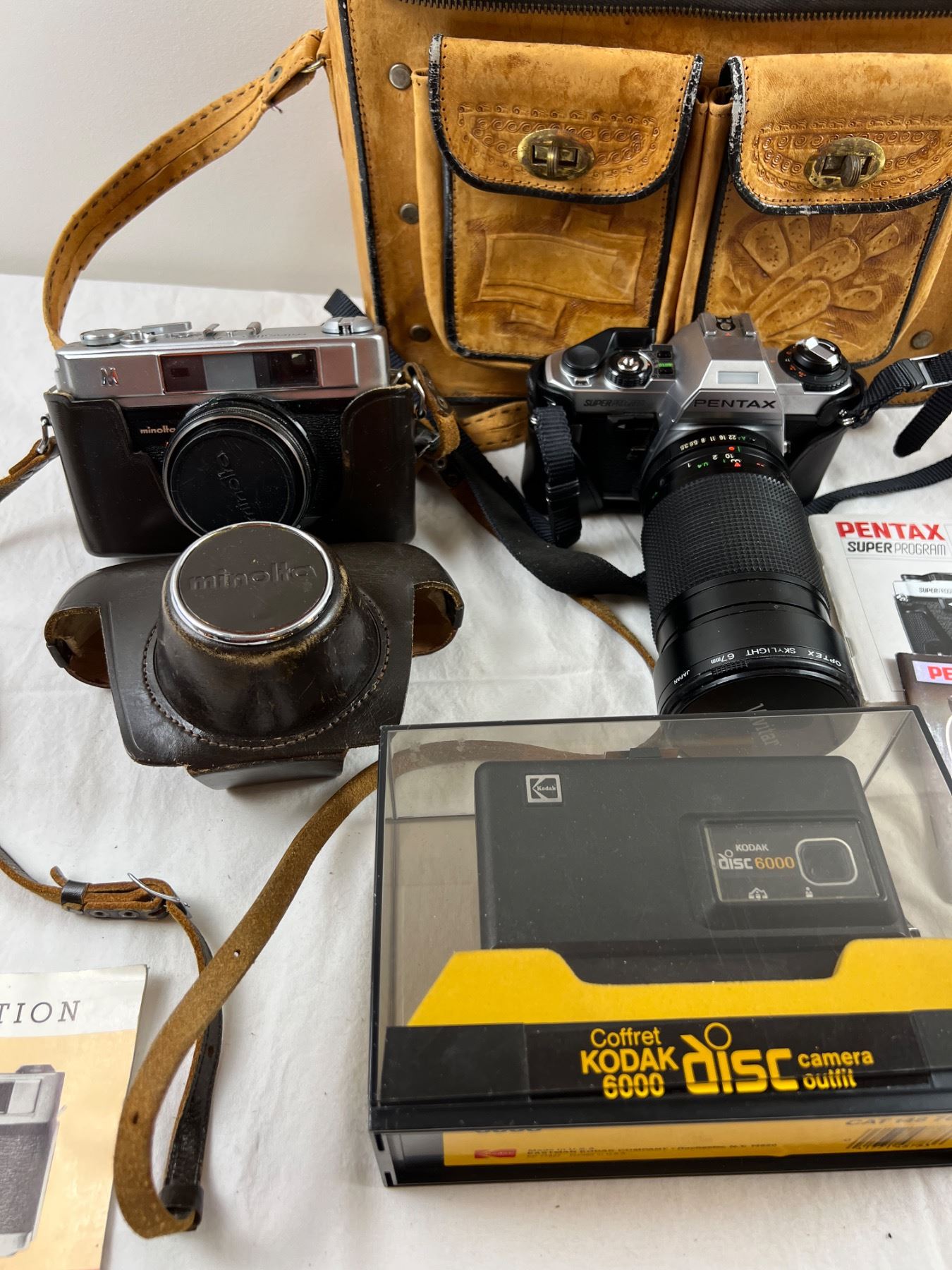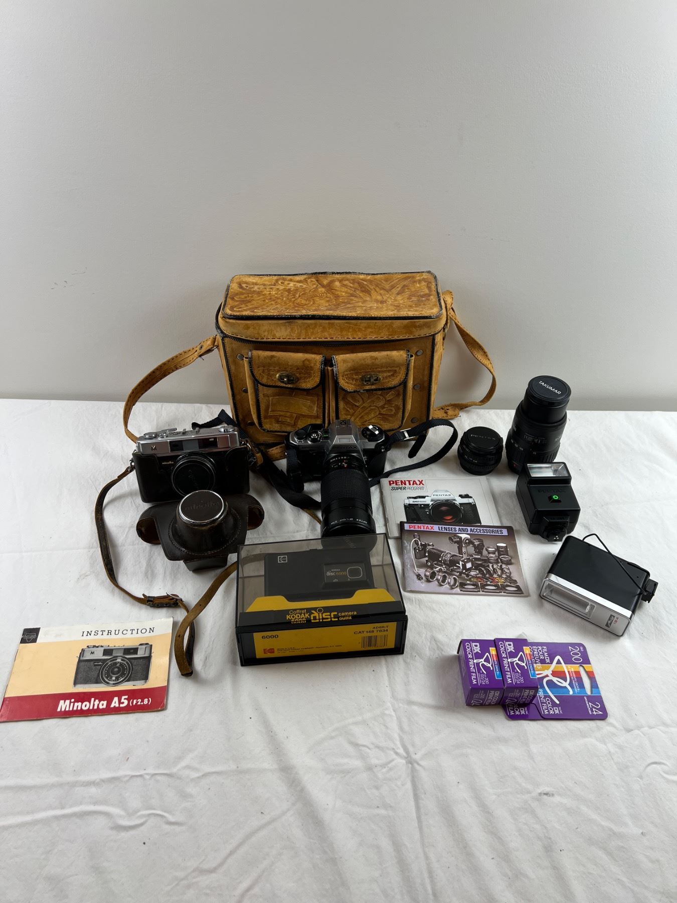 Vintage film camera. Also includes Minolta A5 and Kodak 6000 camera. Unknown if working.