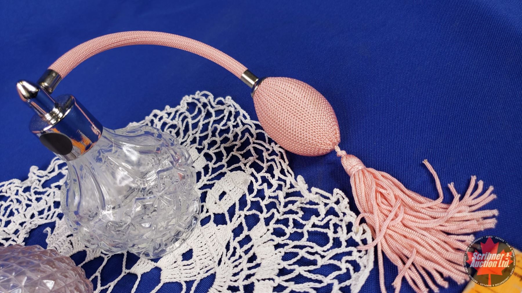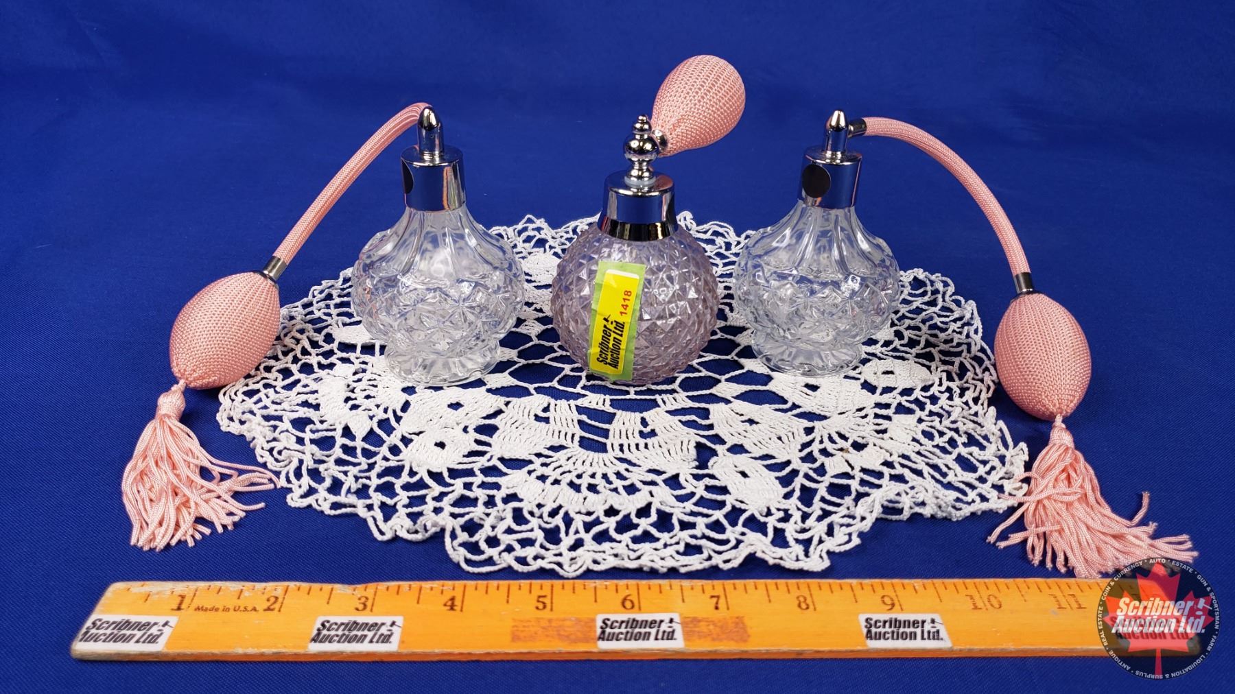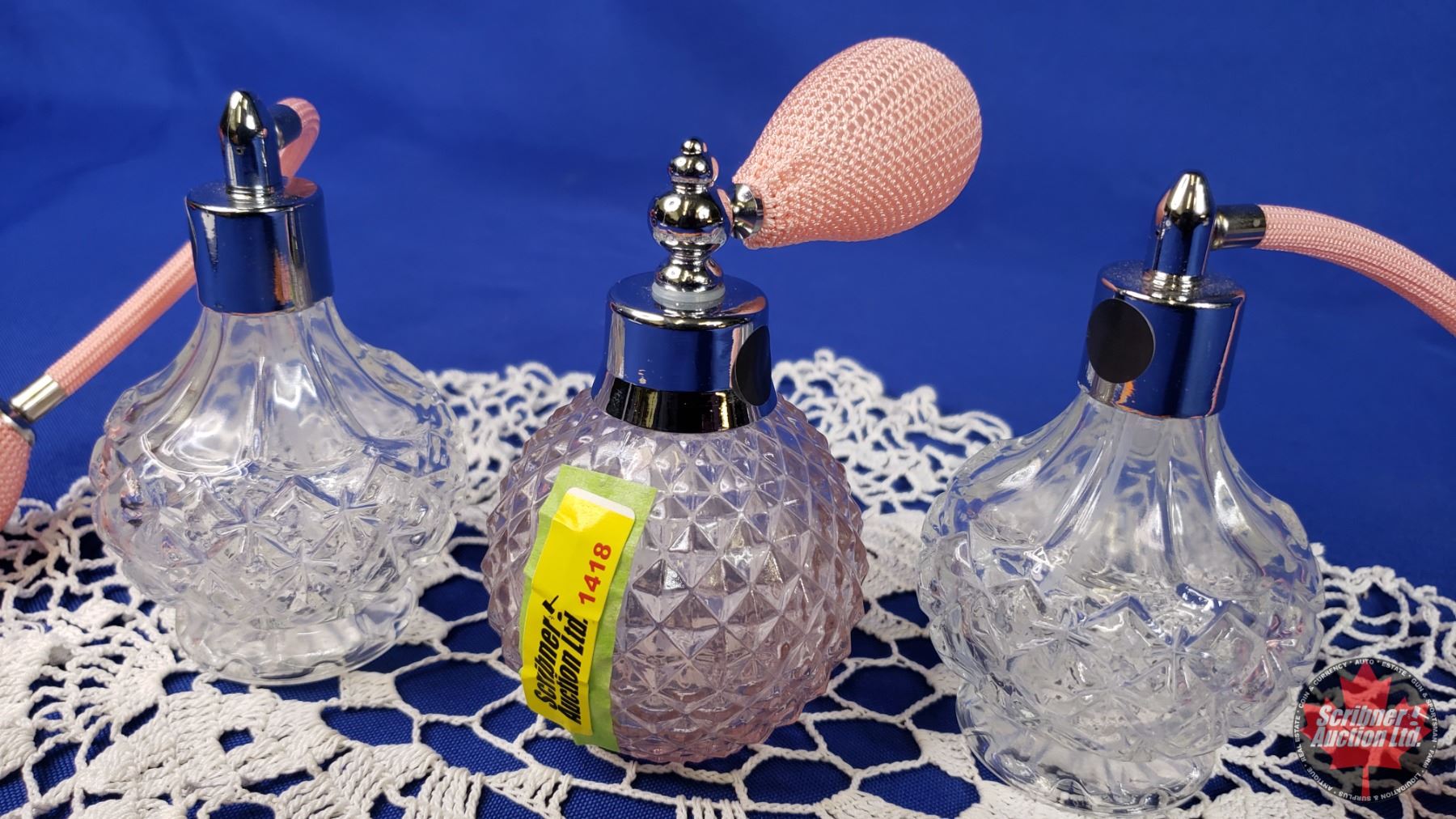 Vintage Perfume Atomizer Bottles (3) (Clear Glass / Pink Pumps) (4"H) (SEE PICS!)