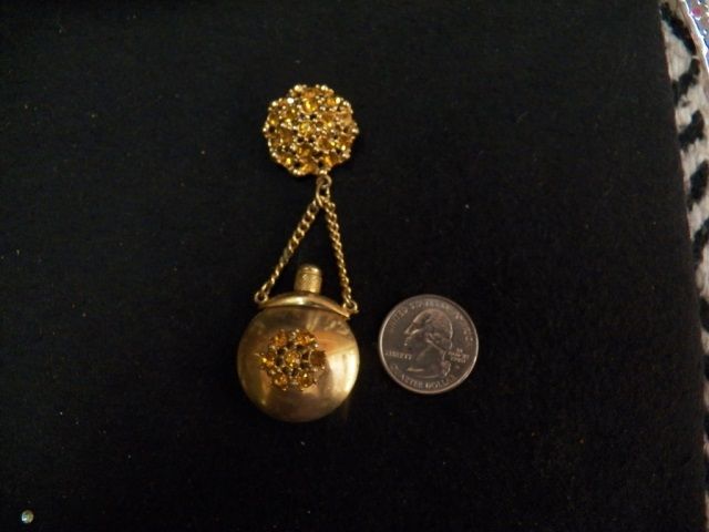 Very nice yellow rinestone broach perfume bottle
