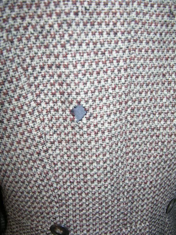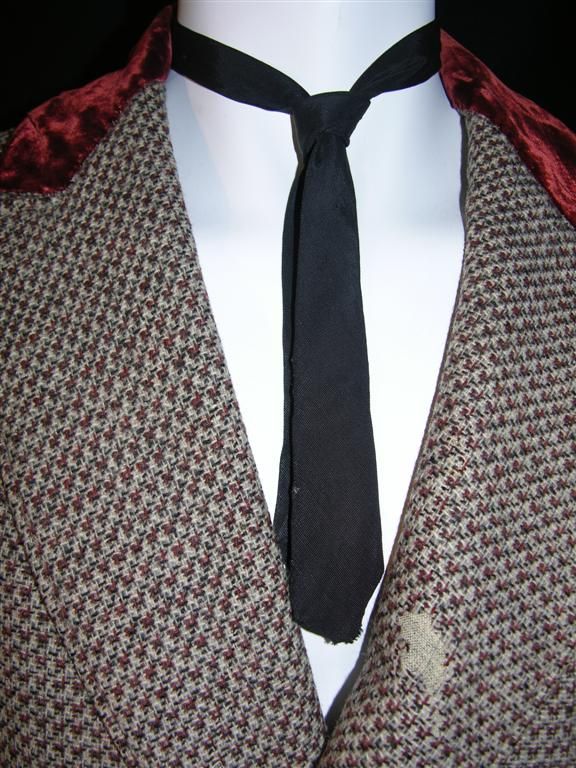 Period costume jacket, brown tweed with brown velvet collar and sleeve accents, with a Berman's label on the inside. A faded "Ralph Sanford" can been seen penned on the inside. Sanford was a prolific actor whose career stretched from the silent era into the 1960s.