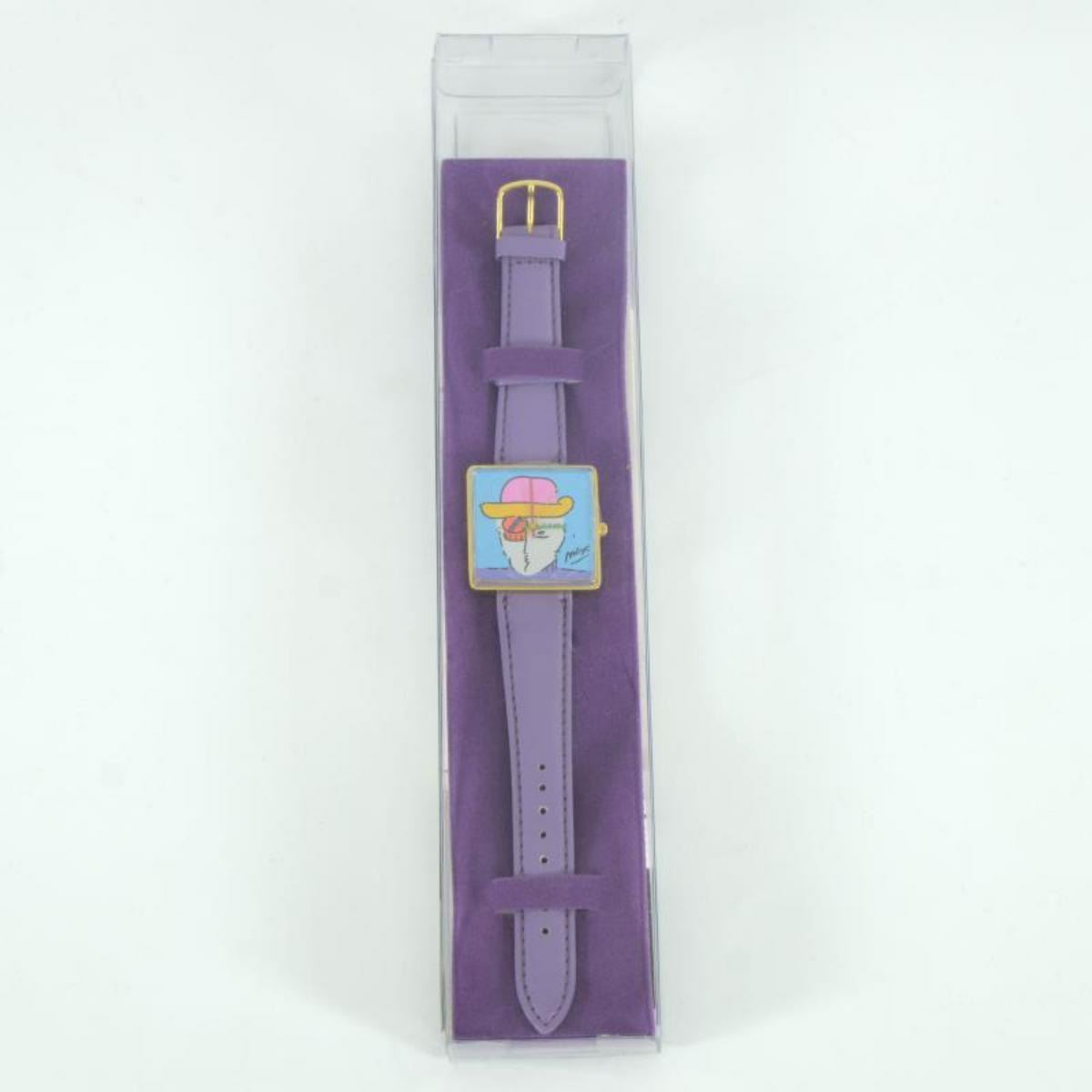 This is a vintage Peter Max "Face" wrist watch created for the Japanese market in 1991. This watch comes in the original packaging and with paperwork. Due to the age of the watch the battery will need to be replaced. A replacement battery will be included in this auction complementary. Measures approx. 1.5" x 1.5" (watch face). Reference #: 237992.
