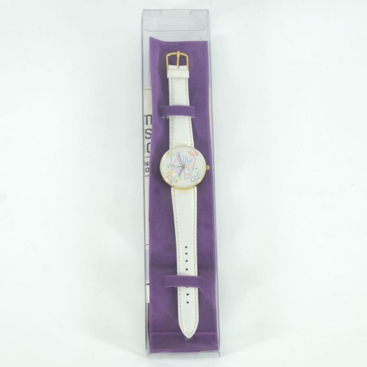 This is a vintage Peter Max wrist watch created for the Japanese market in 1991. This watch comes in the original packaging and with paperwork. Due to the age of the watch the battery will need to be replaced. A replacement battery will be included in this auction complementary. Measures approx. 1.5" x 1.5" (watch face). Reference #: 237995.