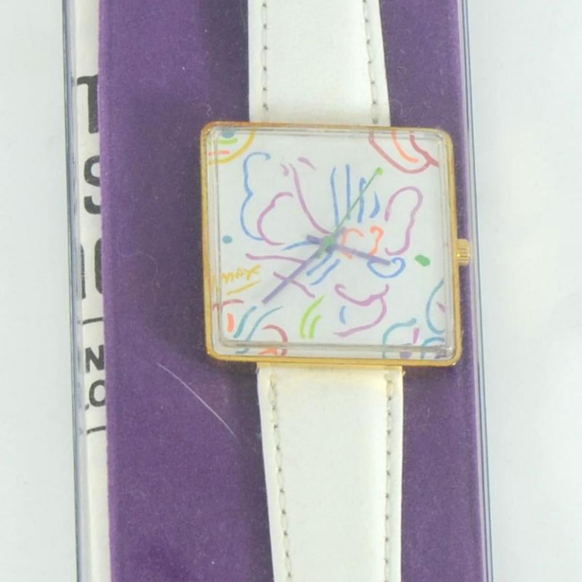 This is a vintage Peter Max wrist watch created for the Japanese market in 1991. This watch comes in the original packaging and with paperwork. Due to the age of the watch the battery will need to be replaced. A replacement battery will be included in this auction complementary. Measures approx. 1.5" x 1.5" (watch face). Reference #: 237994