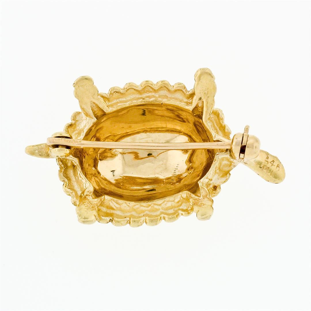 A vintage solid 14k yellow gold detailed turtle brooch pin. Measures 17.42x29.26mm and weighs a total of 6.59 grams.