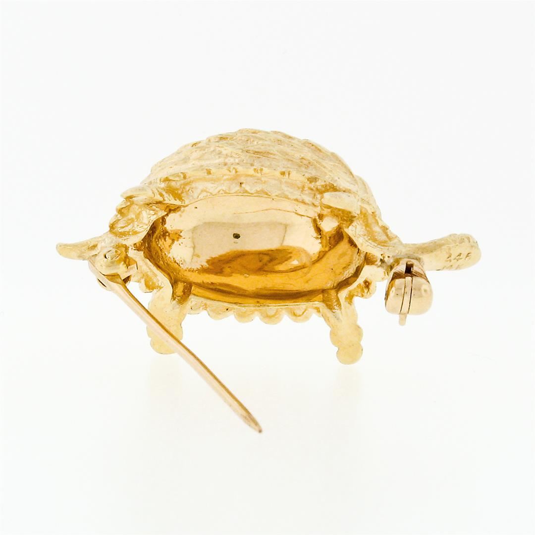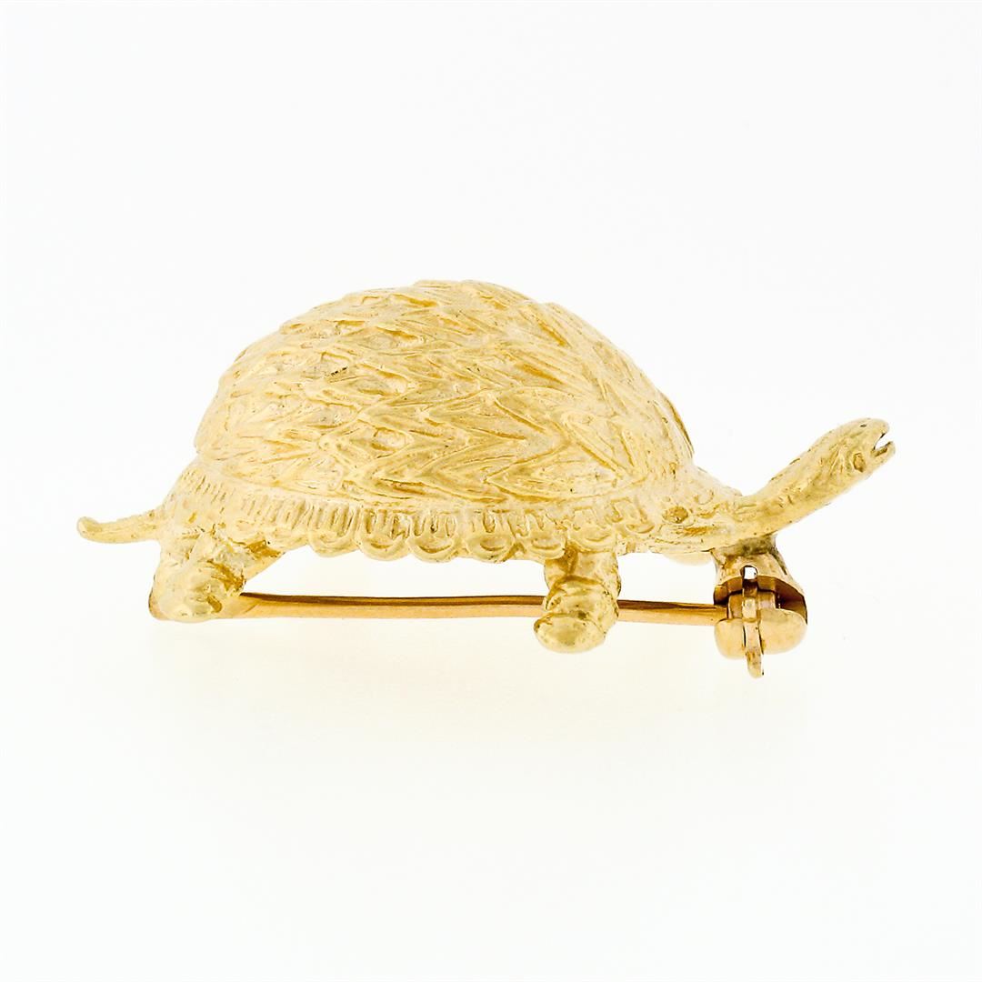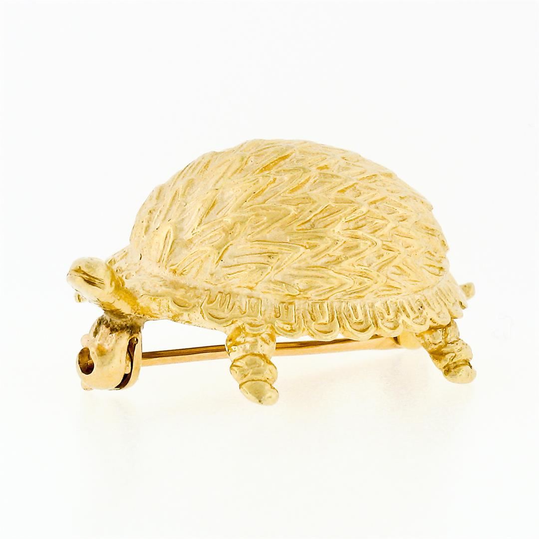 A vintage solid 14k yellow gold detailed turtle brooch pin. Measures 17.42x29.26mm and weighs a total of 6.59 grams.